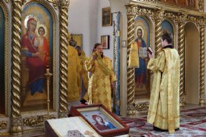 В завершение богослужения было совершено славление перед иконой праздника, после чего владыка Феофан обратился к верующим с архипастырским словом, рассказав об истории чудотворного образа Богородицы «Тихвинская».