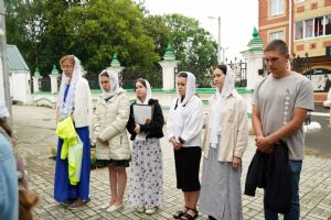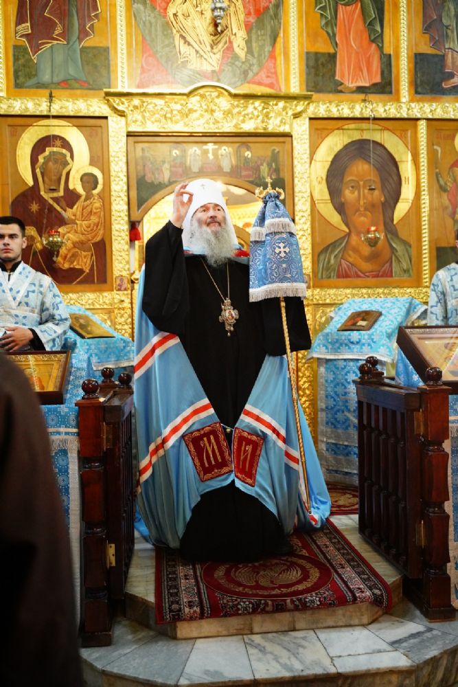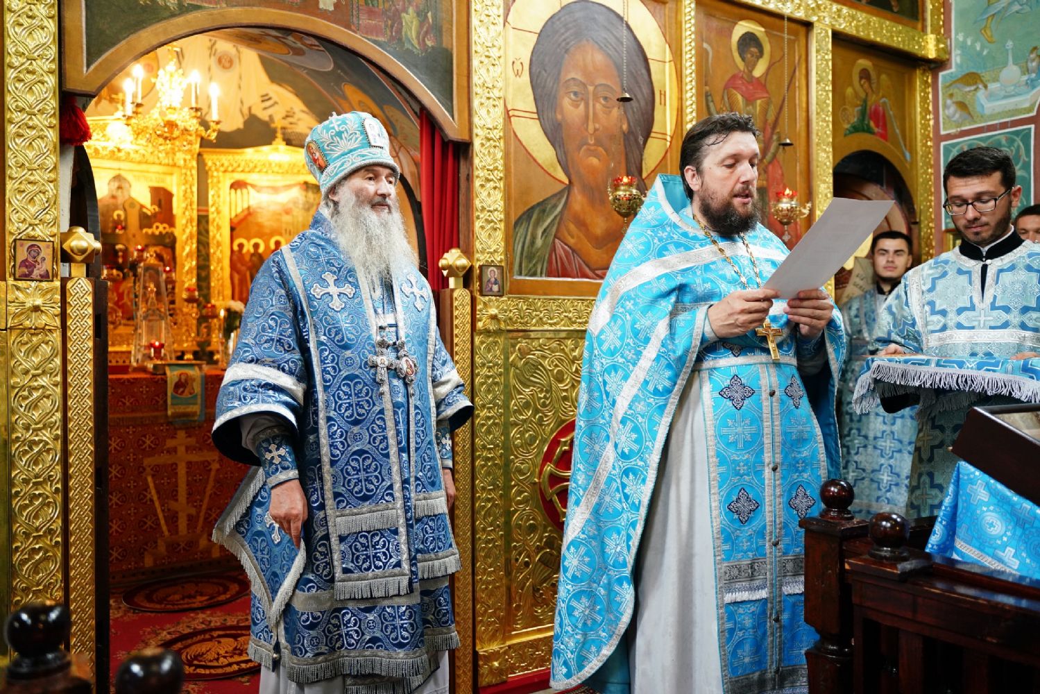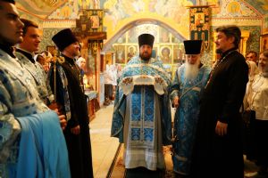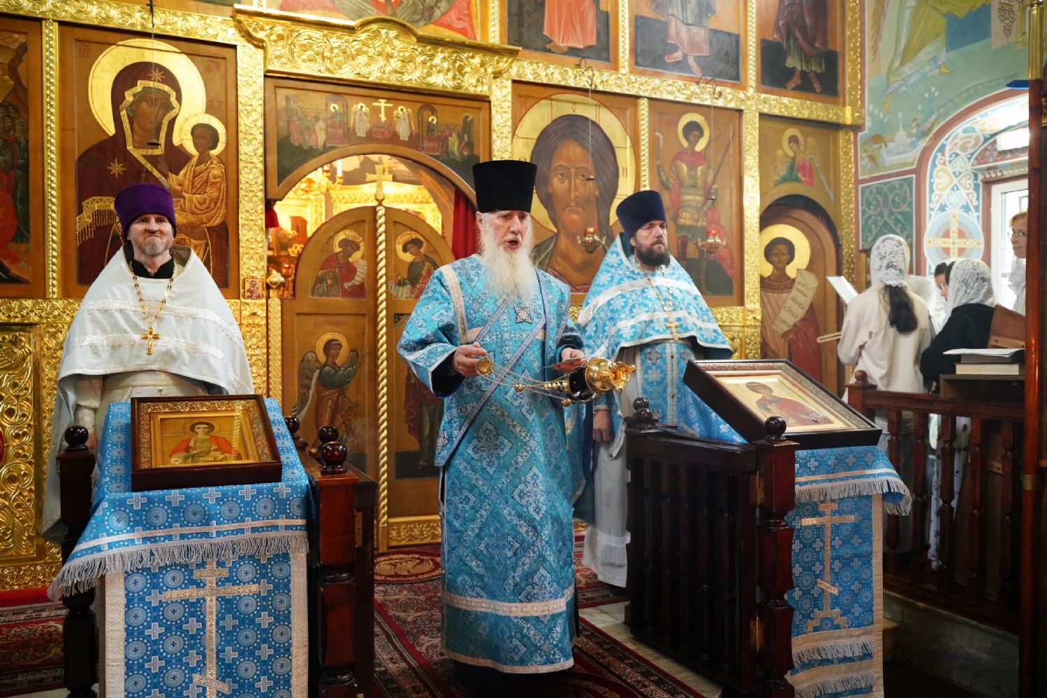 Владыке сослужили благочинный Йошкар-Олинского церковного округа протоиерей Андрей Норкин, клирик Вознесенского собора г. Йошкар-Олы иерей Александр Деревяшкин и протодиакон Михаил Козловский. Пел хор Тихвинского храма под управлением Марины Богатыревой.