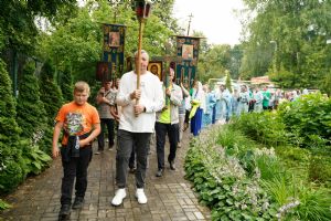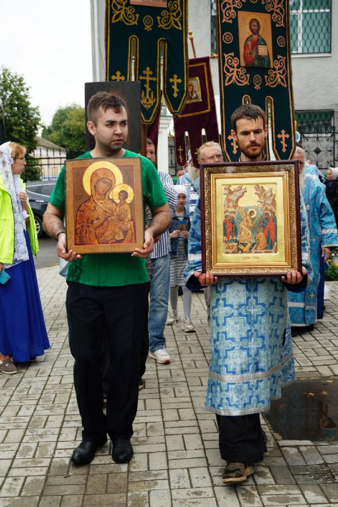 После Божественной литургии в ознаменование престольного праздника вокруг храма был совершен крестный ход со чтением Евангелия и кроплением святой водой.