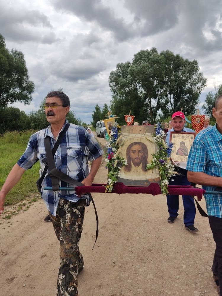 Ранним утром от строящегося храма в честь Спаса Нерукотворного с. Цибикнур участники крестного хода отправились в путь с иконами Нерукотворного Образа Спасителя, Пресвятой Богородицы «Владимирская», ковчежцем с мощами великомученика Георгия Победоносца. Именно в честь этих святынь раньше были освящены три престола в старинном храме села Цибикнур.