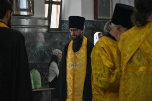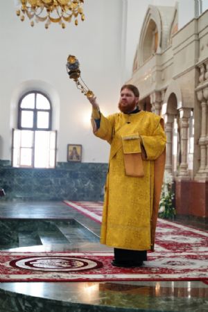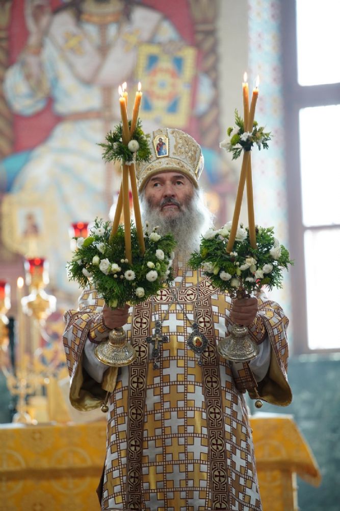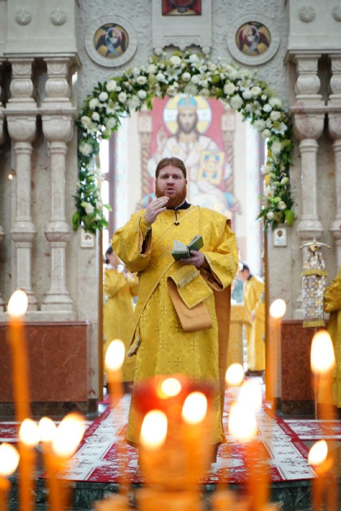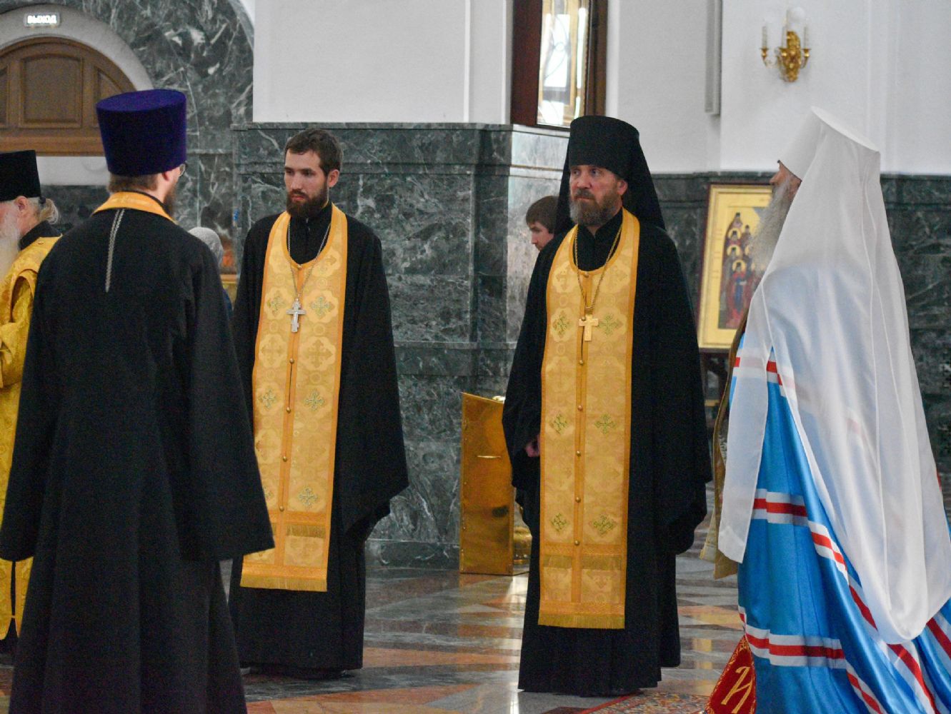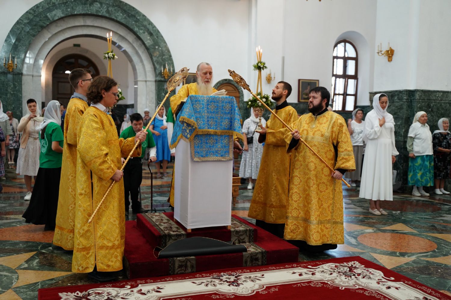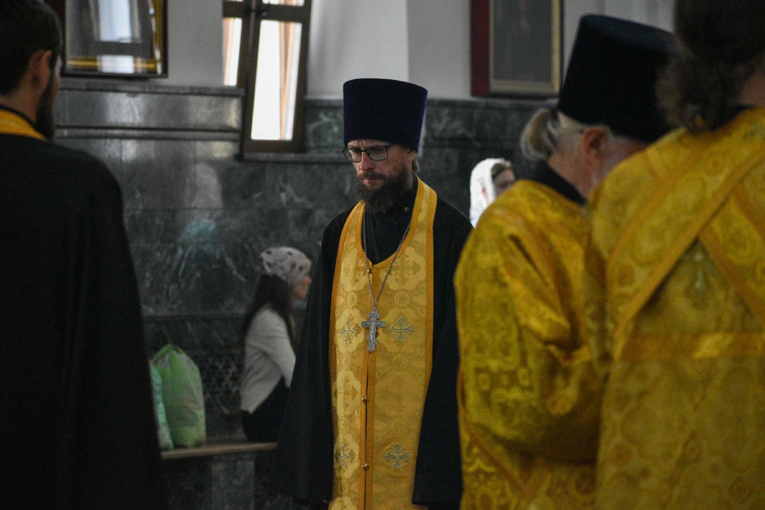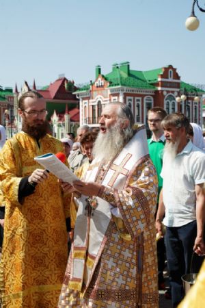 Архипастырю сослужили секретарь Йошкар-Олинского епархиального управления иеромонах Серафим (Пасанаев), клирики кафедрального собора иерей Евгений Самойлов, иерей Иоанн Милютин, диакон Андрей Дружинин и протодиакон Михаил Козловский. Песнопения исполнял хор «Благовест» под управлением Татьяны Черновой.