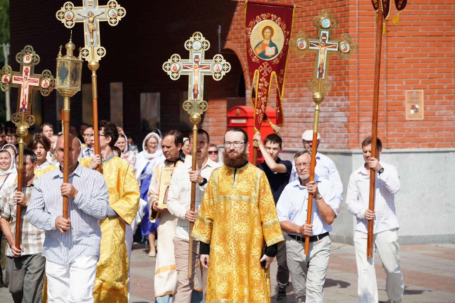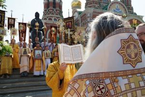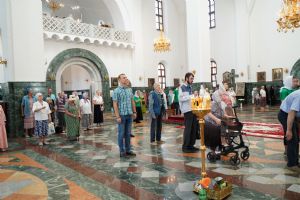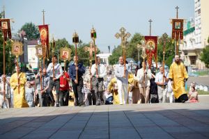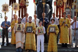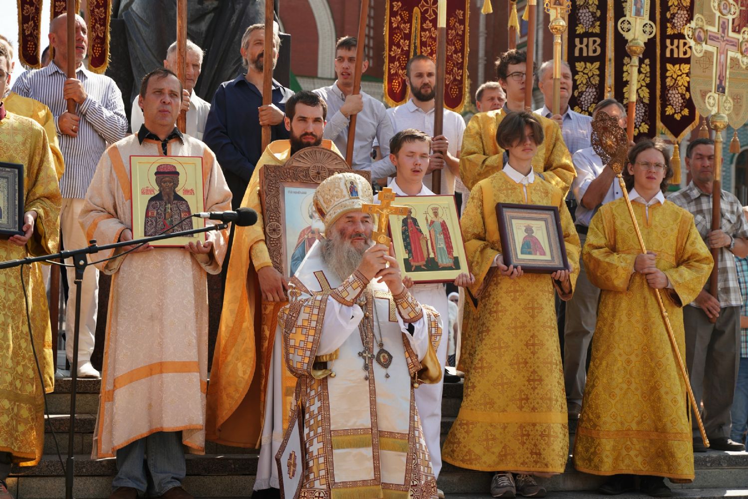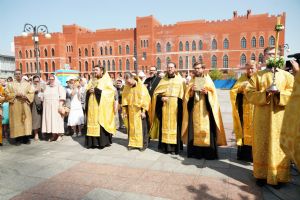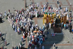 После Литургии верующие вышли из собора на площадь Девы Марии, сюда же подошли крестные ходы из других городских храмов – Вознесенского, Воскресенского, Троицкого, Успенского и Татианинского. Митрополит Иоанн с духовенством отслужили особый молебен на День Крещения Руси.
