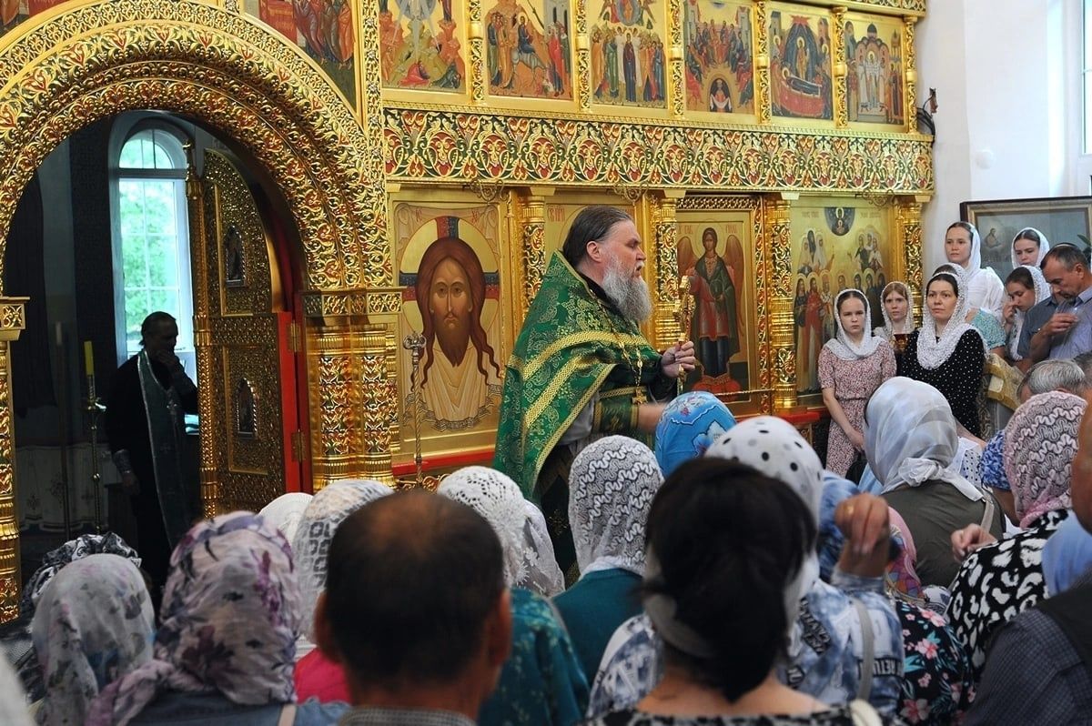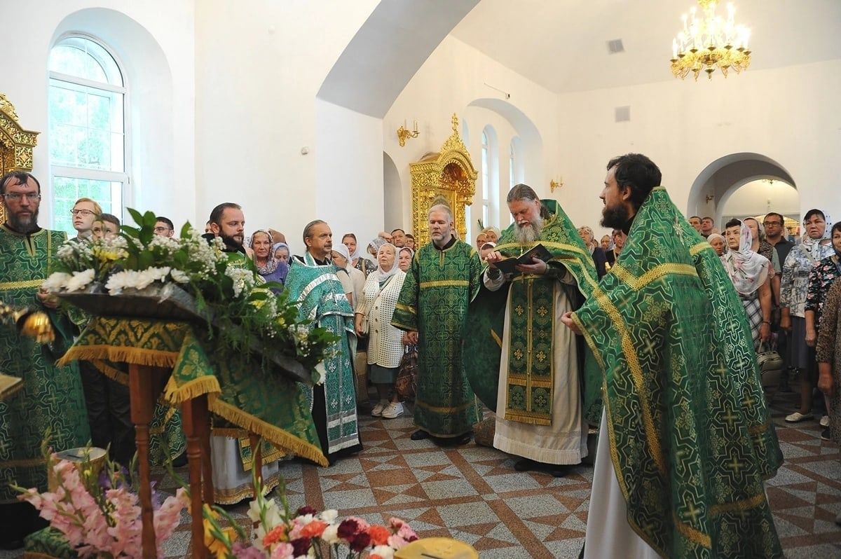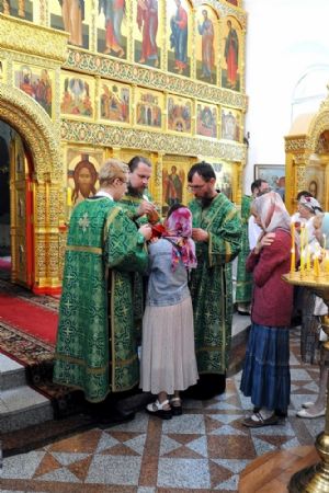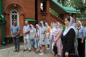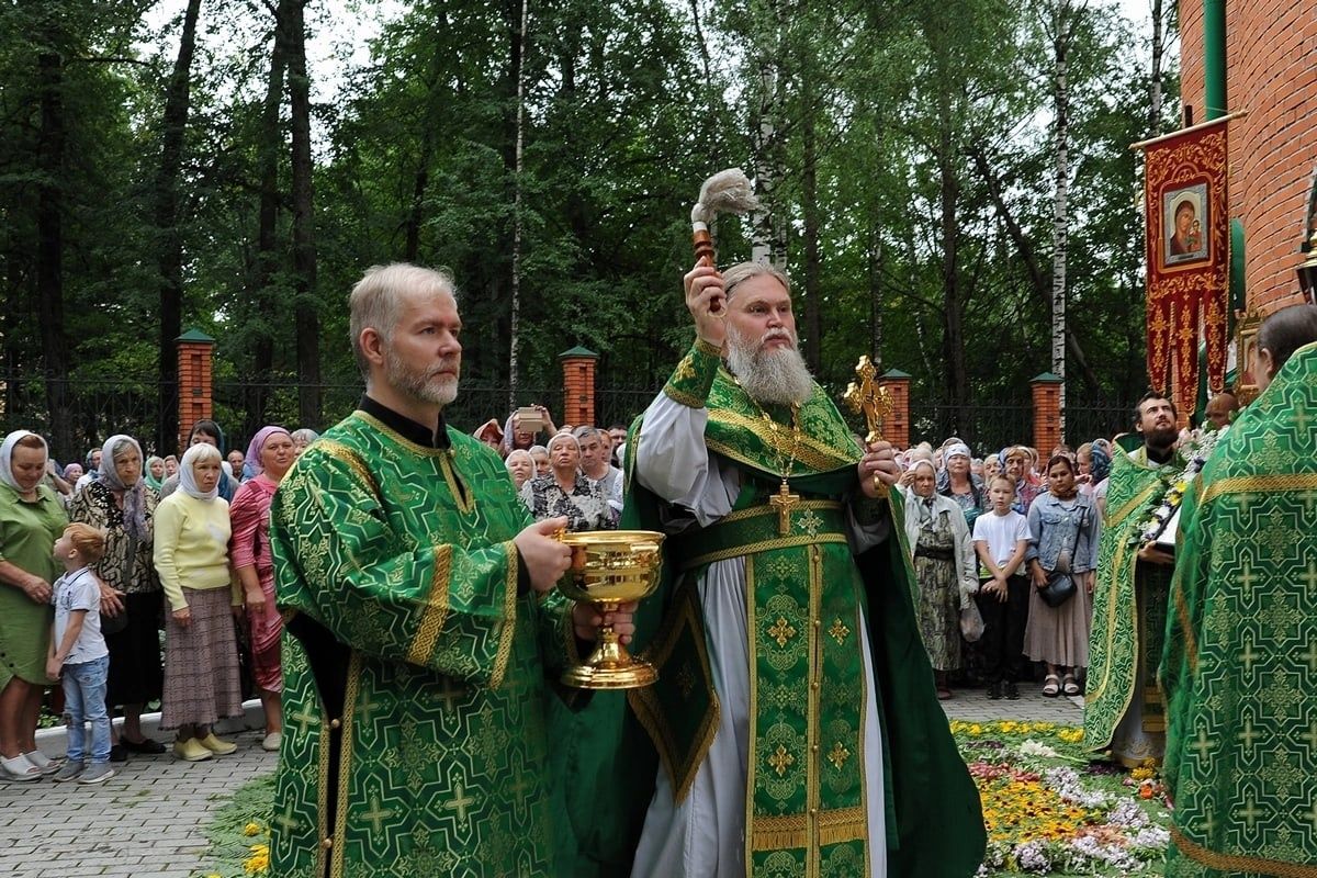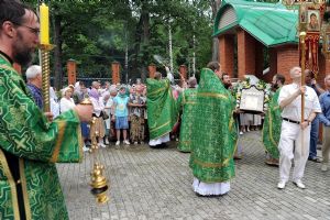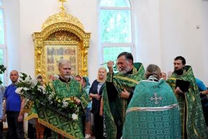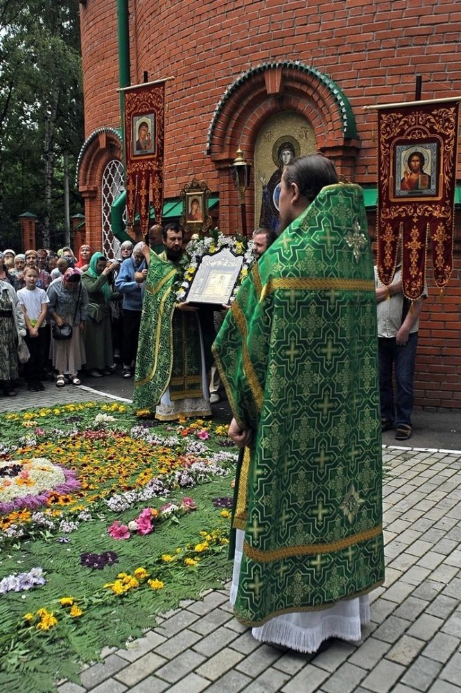 После Литургии, по традиции престольных праздников, прошел крестный ход вокруг храма со чтением Евангелия и кропление святой водой.