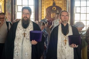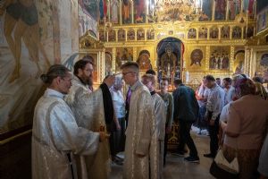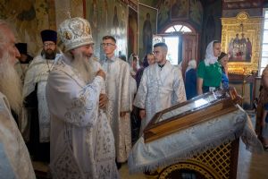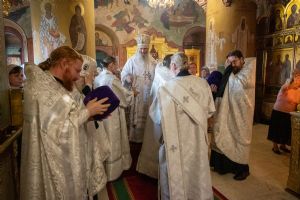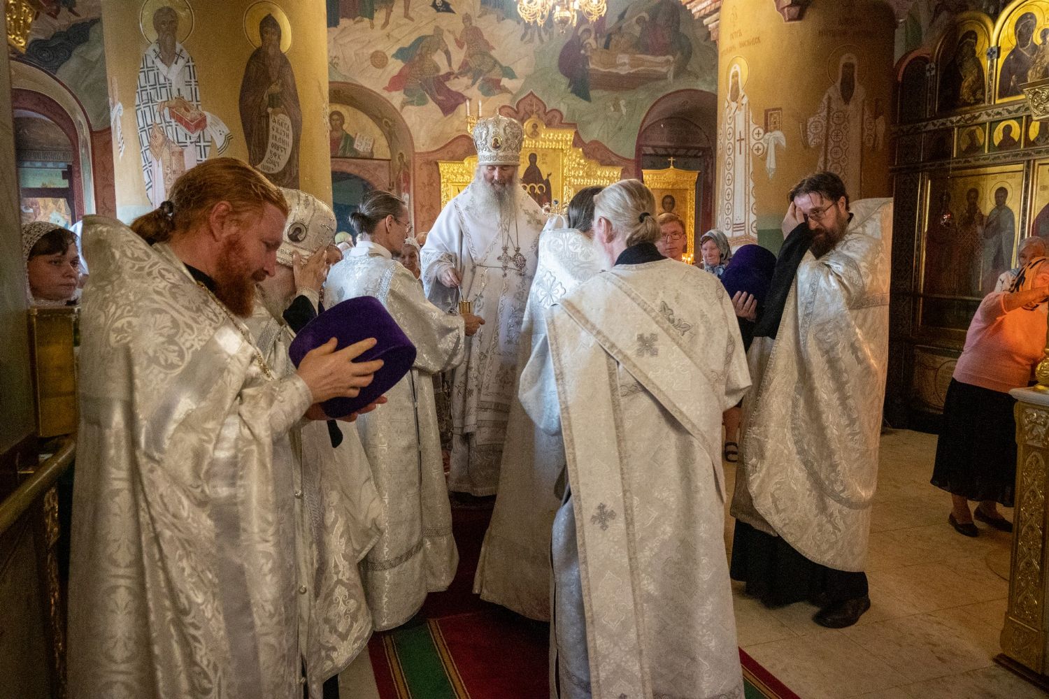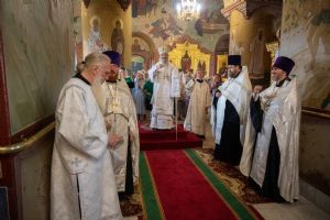 Владыке сослужили настоятель собора протоиерей Евгений Кутырев, клирики собора иереи Владимир Глебов, Олег Большаков, Александр Деревяшкин, диакон Владимир Лихачев, а также протодиакон Михаил Козловский. Песнопения исполнял хор собора под управлением регента Ангелины Бабиной.