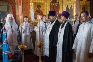 18 августа вечером, в канун праздника Преображения Господа Бога и Спаса нашего Иисуса Христа, митрополит Йошкар-Олинский и Марийский Иоанн возглавил всенощное бдение в Вознесенском соборе г. Йошкар-Олы.