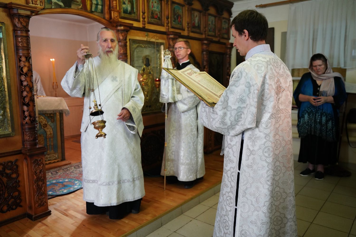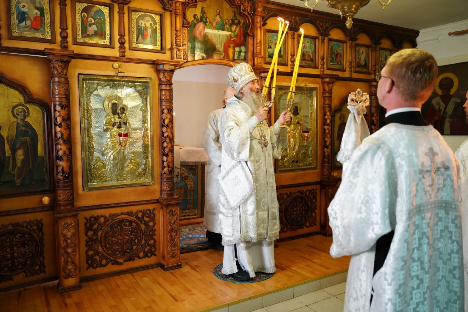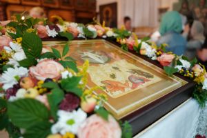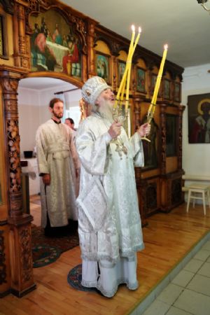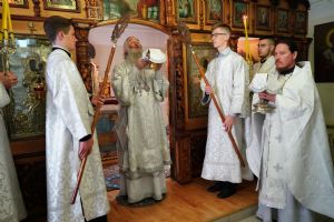 Его Высокопреосвященству сослужили секретарь Йошкар-Олинского епархиального управления иеромонах Серафим (Пасанаев), клирики храма иерей Димитрий Иванов, иерей Павел Дурандин и протодиакон Михаил Козловский. Песнопения исполнял хор храма.