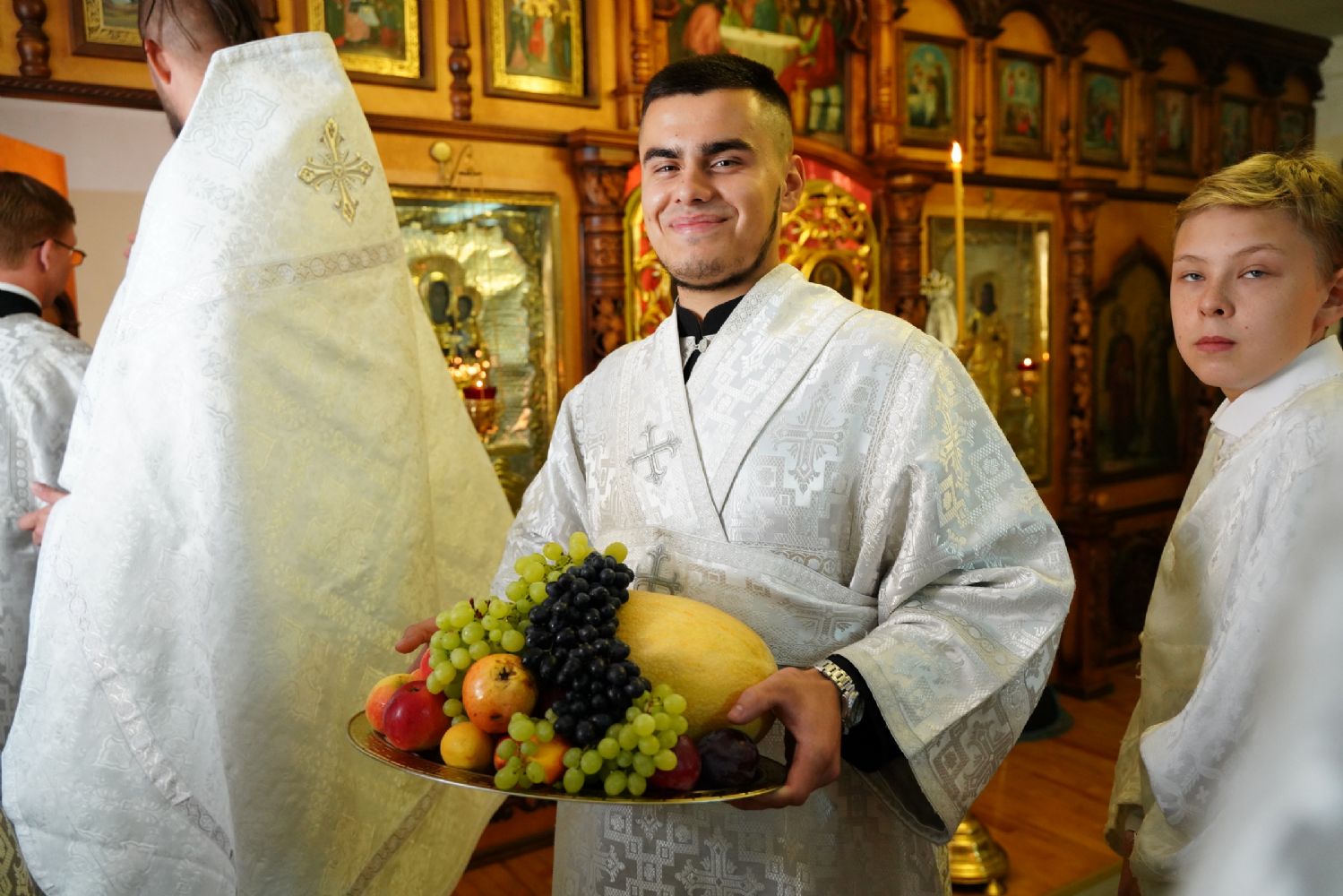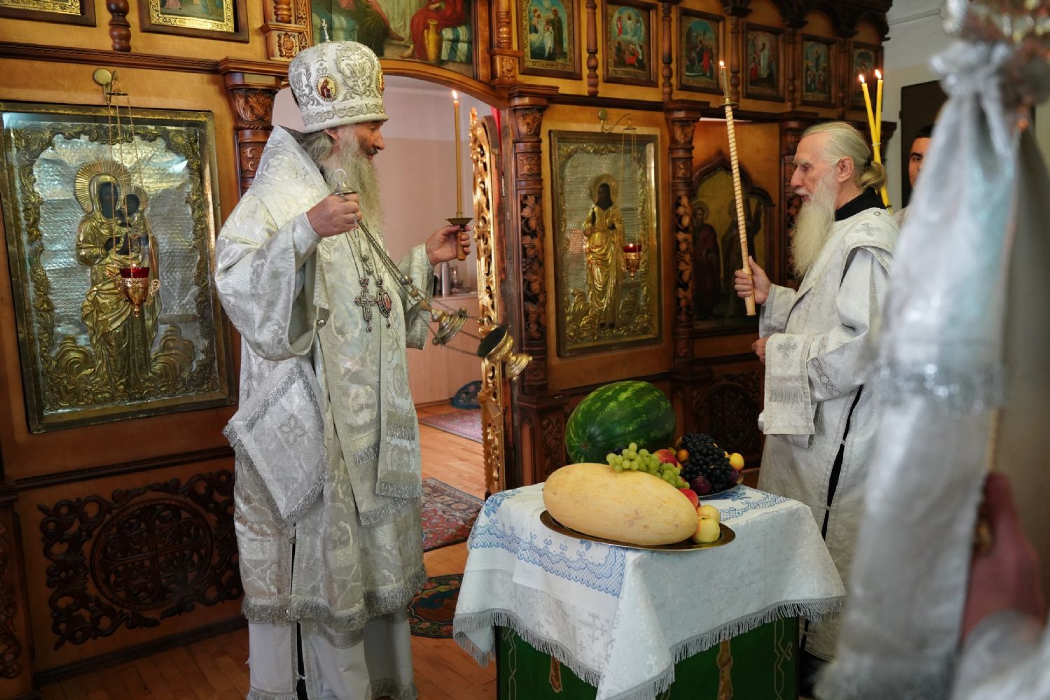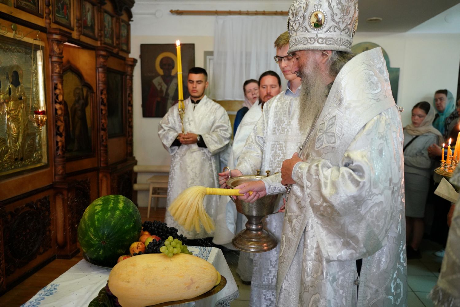 После Литургии, по традиции Православной Церкви, были освящены яблоки, виноград и другие фрукты свежего урожая. Затем митрополит Иоанн обратился к собравшимся с архипастырским словом, напомнив о евангельском событии Преображения Господня и раскрыв духовный смысл праздника.