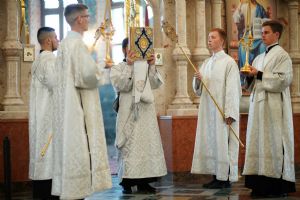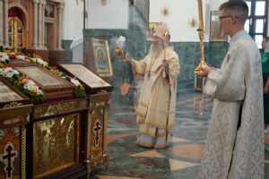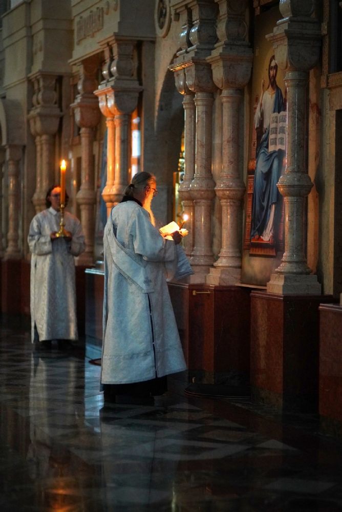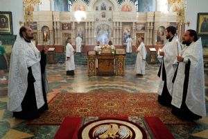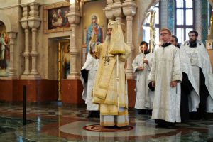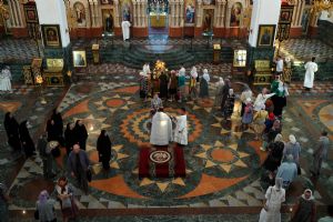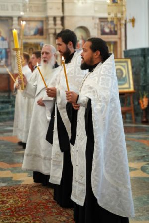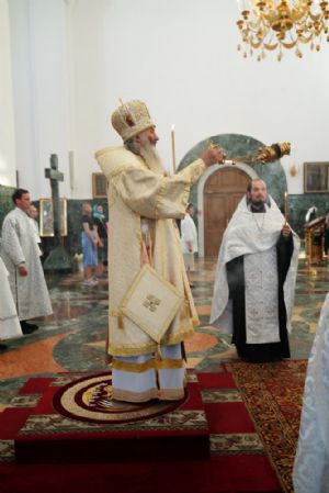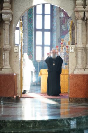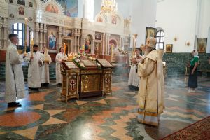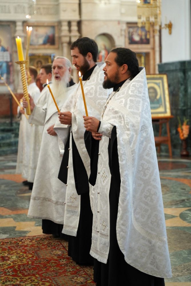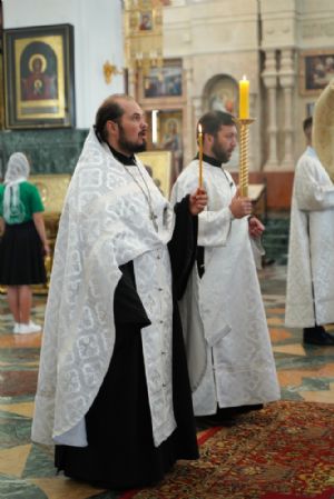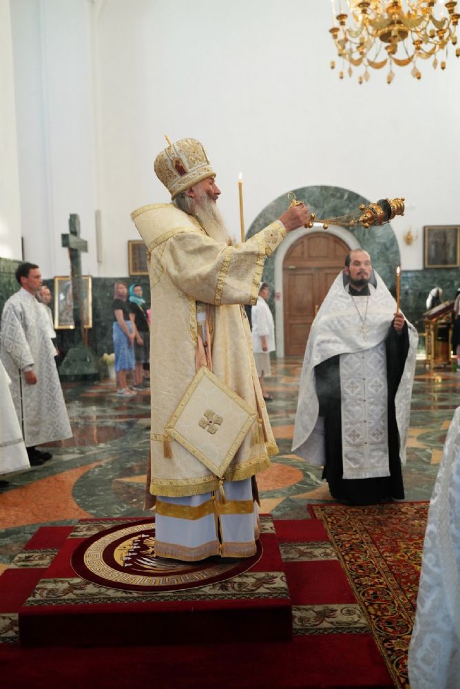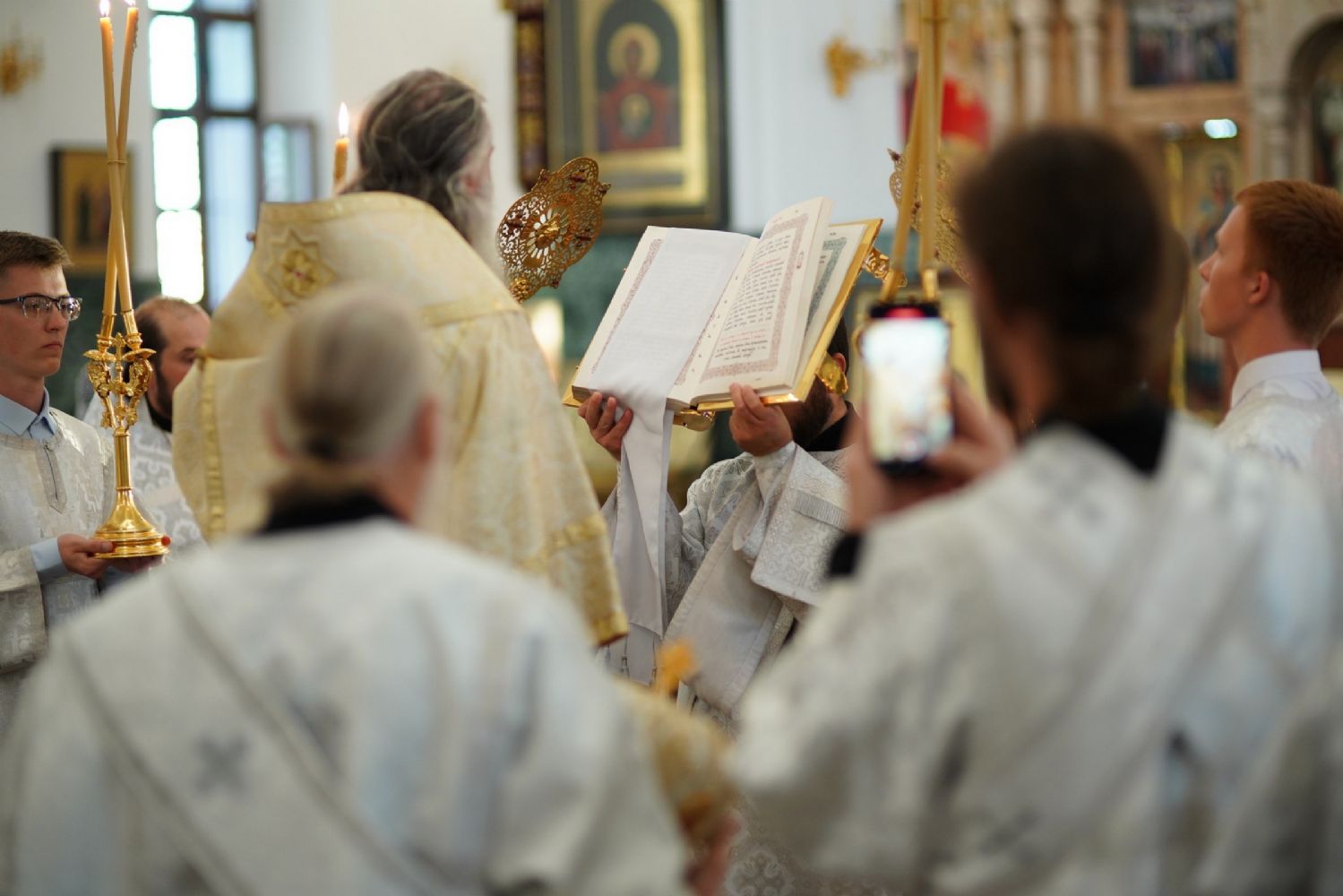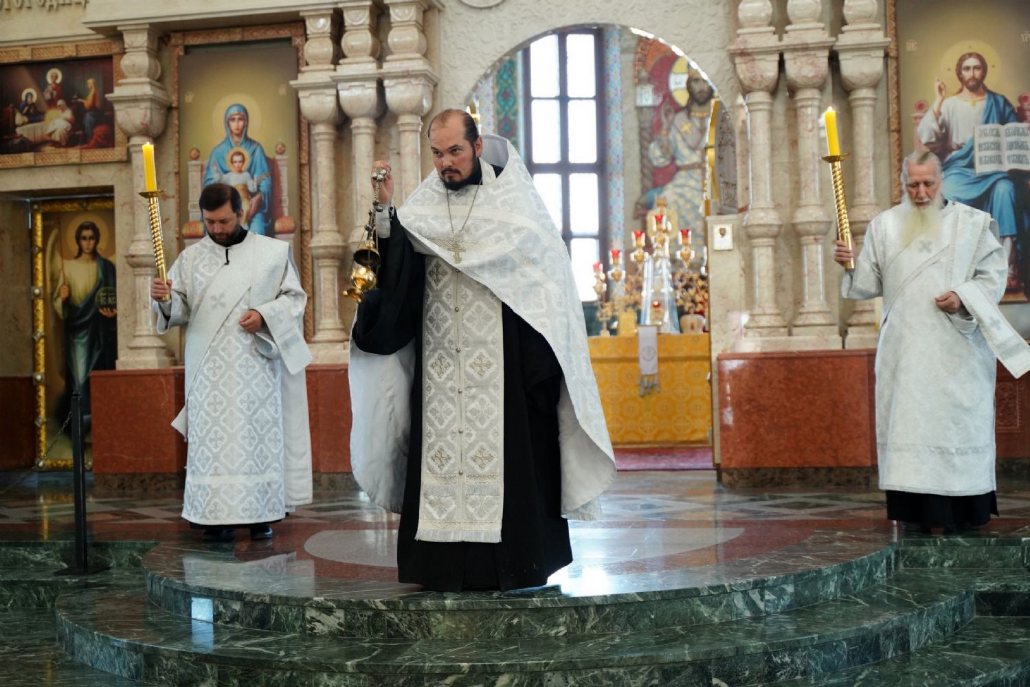 Владыке сослужили клирики собора иереи Никифор Захаров, Александр Староверов и Иоанн Милютин, диакон Артемий Бобоч, а также протодиакон Михаил Козловский. Песнопения исполнял хор «Благовест» под управлением Надежды Поздеевой.