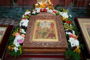 В память святителя Митрофана на вечерне читались ветхозаветные паримии из книг Притчей и Премудрости Соломоновой о награде праведникам от Господа.