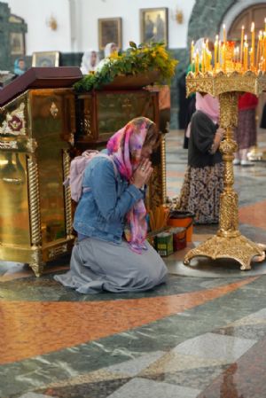 14 января в Троицком соборе Свято-Троицкого Серафимо-Дивеевского женского монастыря было совершено вечернее богослужение: малая вечерня с акафистом преподобному Серафиму Саровскому и всенощное бдение.