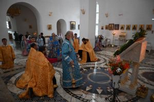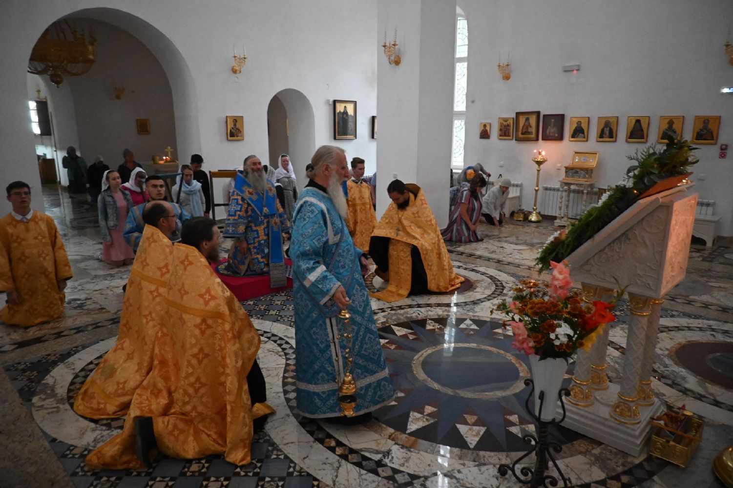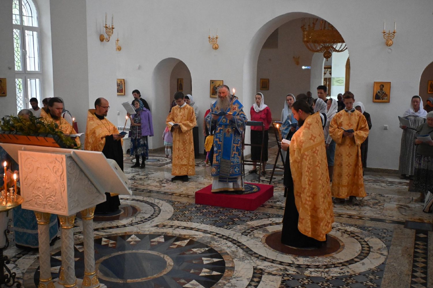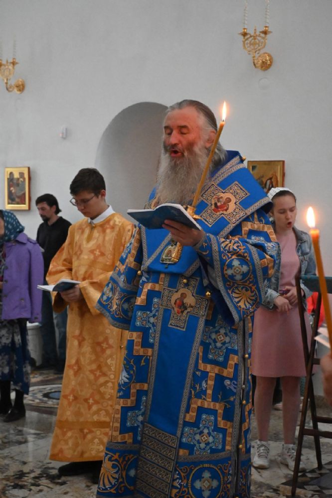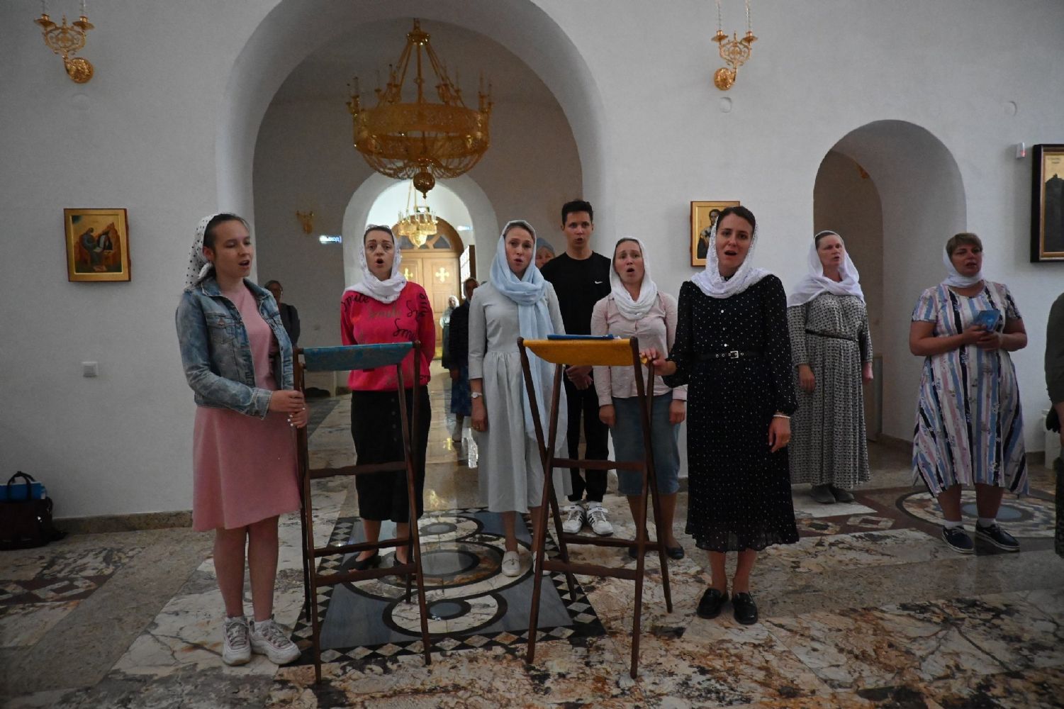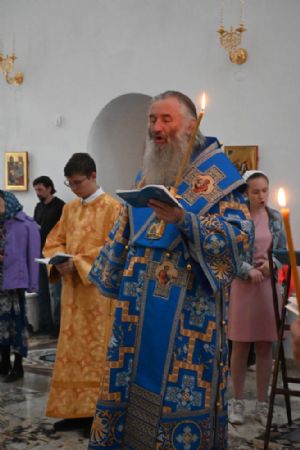 Владыке сослужили настоятель храма иерей Алексий Михеев, клирики храма иереи Игорь Коваль и Димитрий Лукьянов и протодиакон Михаил Козловский. Песнопения исполнял хор храма под управлением Александры Ивановой.