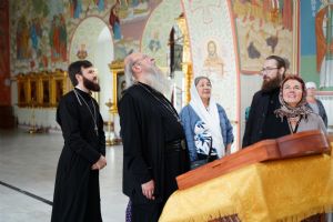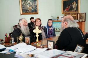 В завершение визита в Йошкар-Олинском епархиальном управлении состоялась встреча гостей с митрополитом Иоанном, после которой владыка провел для гостя экскурсию по домовому храму иконы Богородицы «Троеручица».