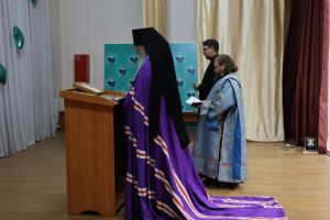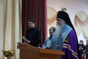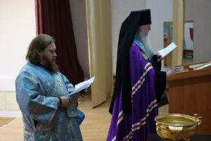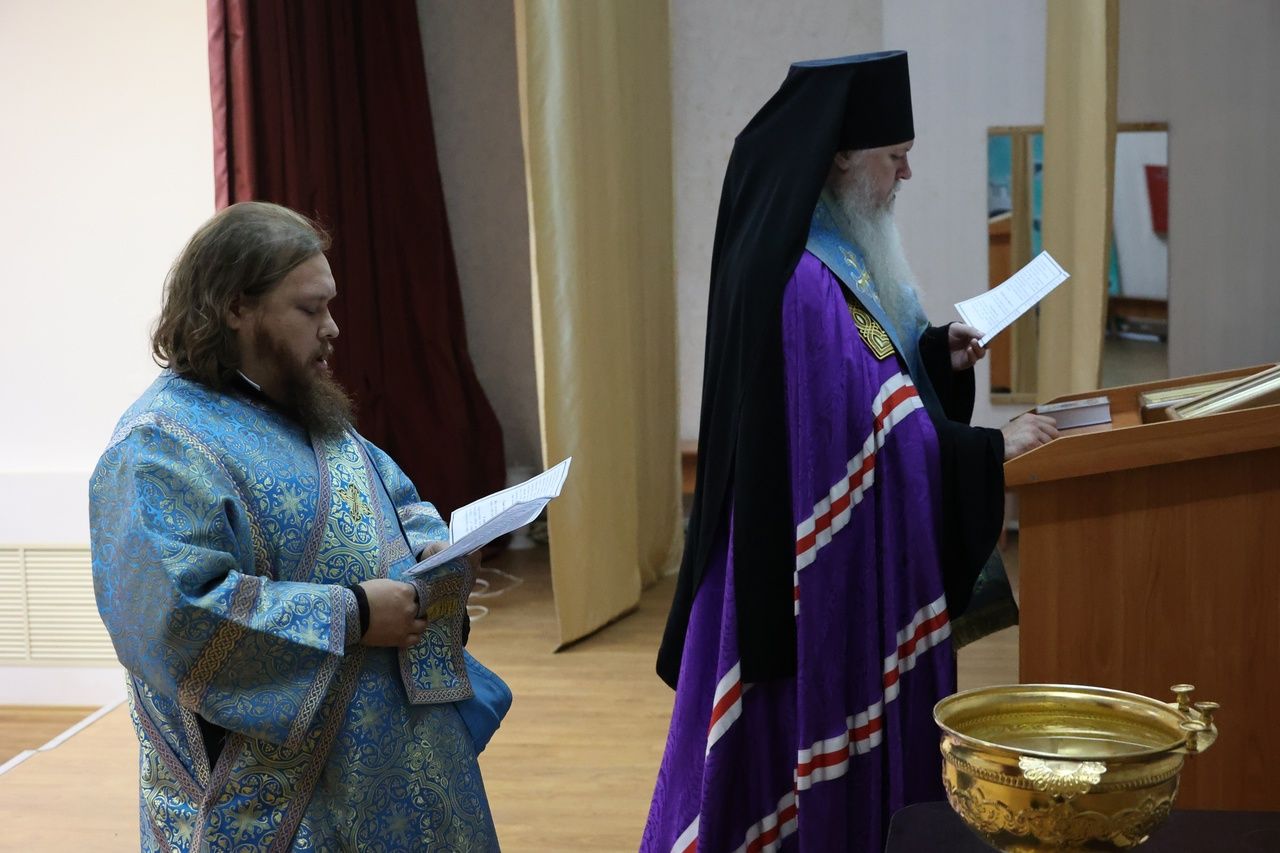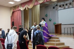 После линейки епископ Феофан совершил молебен с водосвятием, на начало учения. Его Преосвященству сослужил клирик Никольского кафедрального собора диакон Иоанн Захаров.