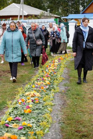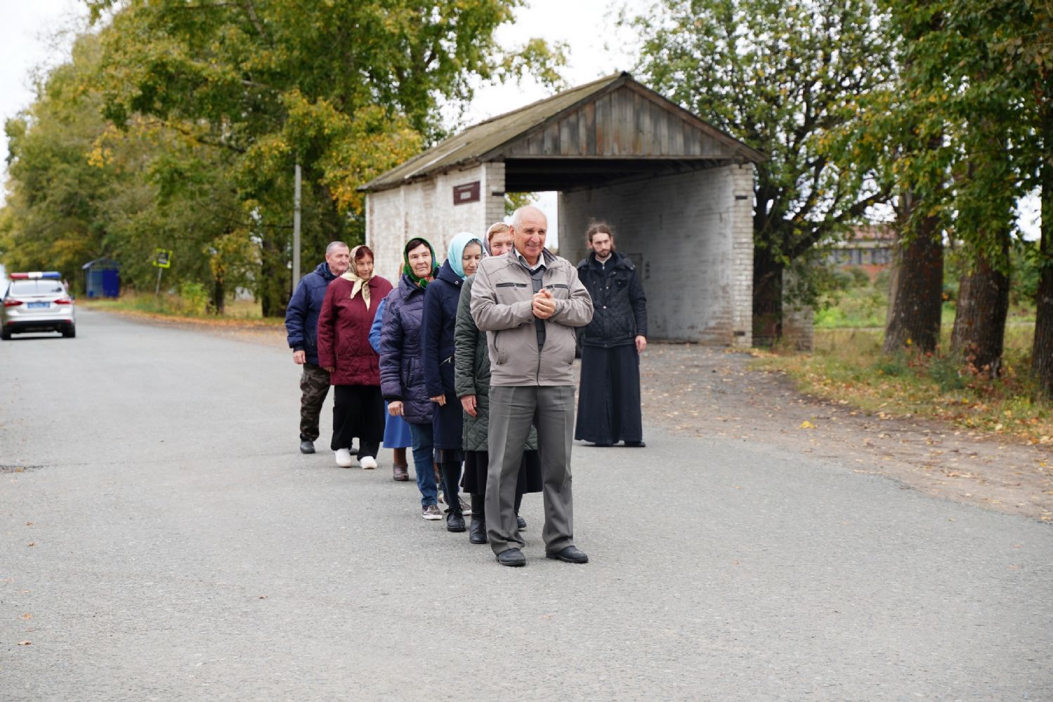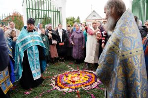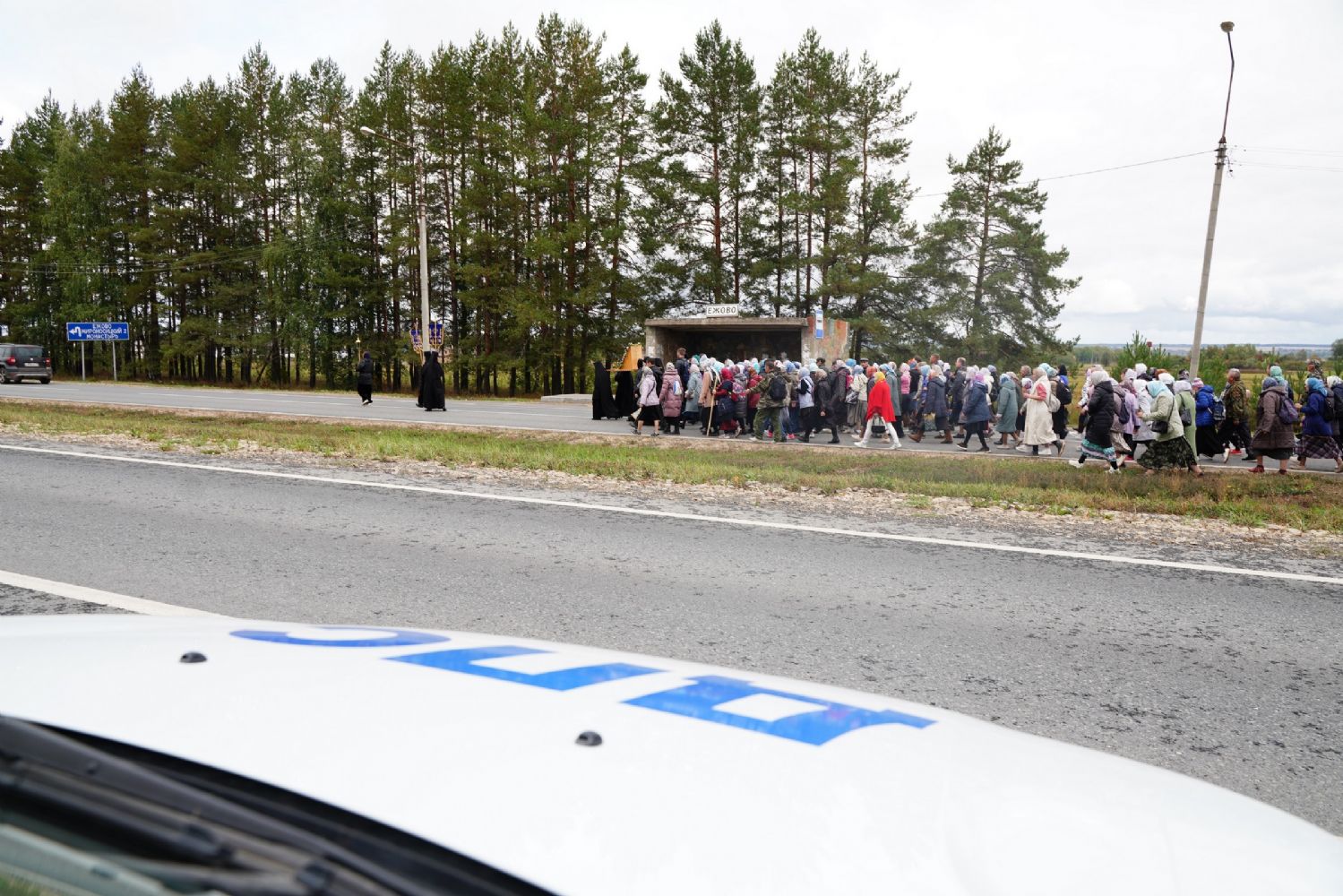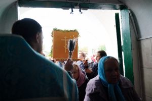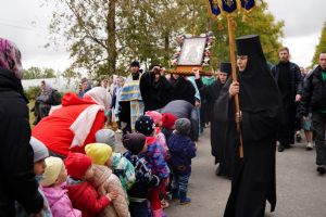 После трапезы совершили молебен, и крестный ход отправился в путь. В течение десяти дней Сама Пречистая Богородица в Своем благодатном образе «Мироносицкая» будет шествовать по весям и улицам нашего стольного града, благословляя всех, кто исполняет Ее завет: исполняет заповеди Ее Сладчайшего Сына Господа нашего Иисуса Христа и прославляет Ее Архангельским благовестием.