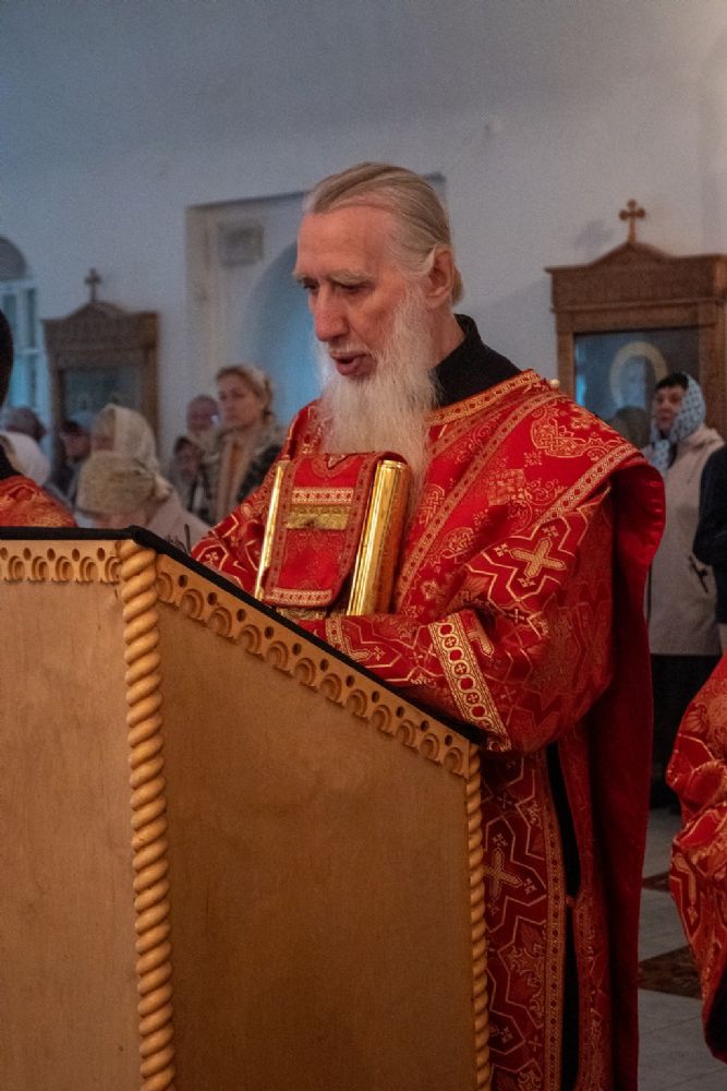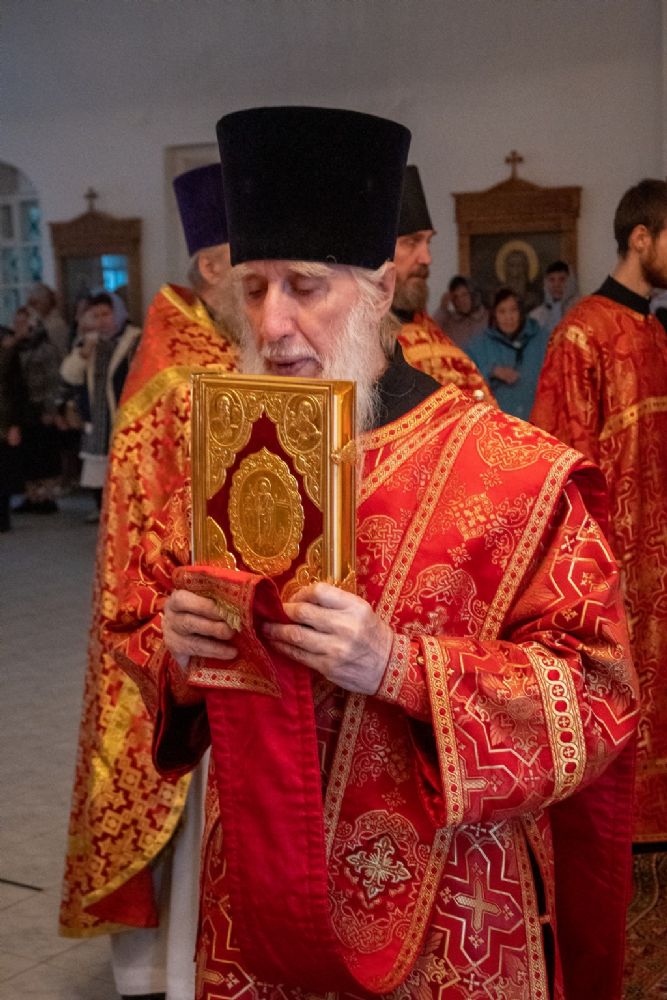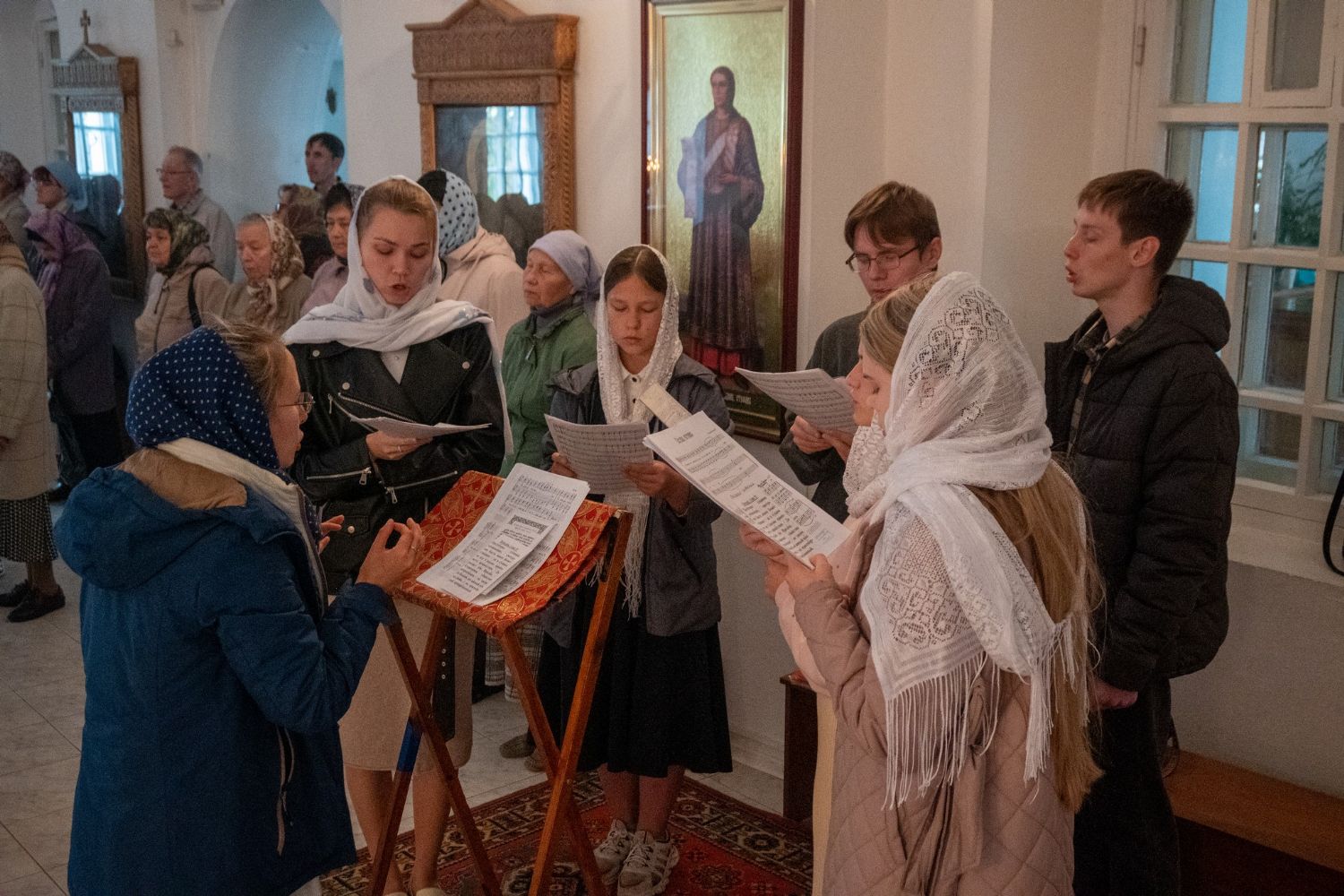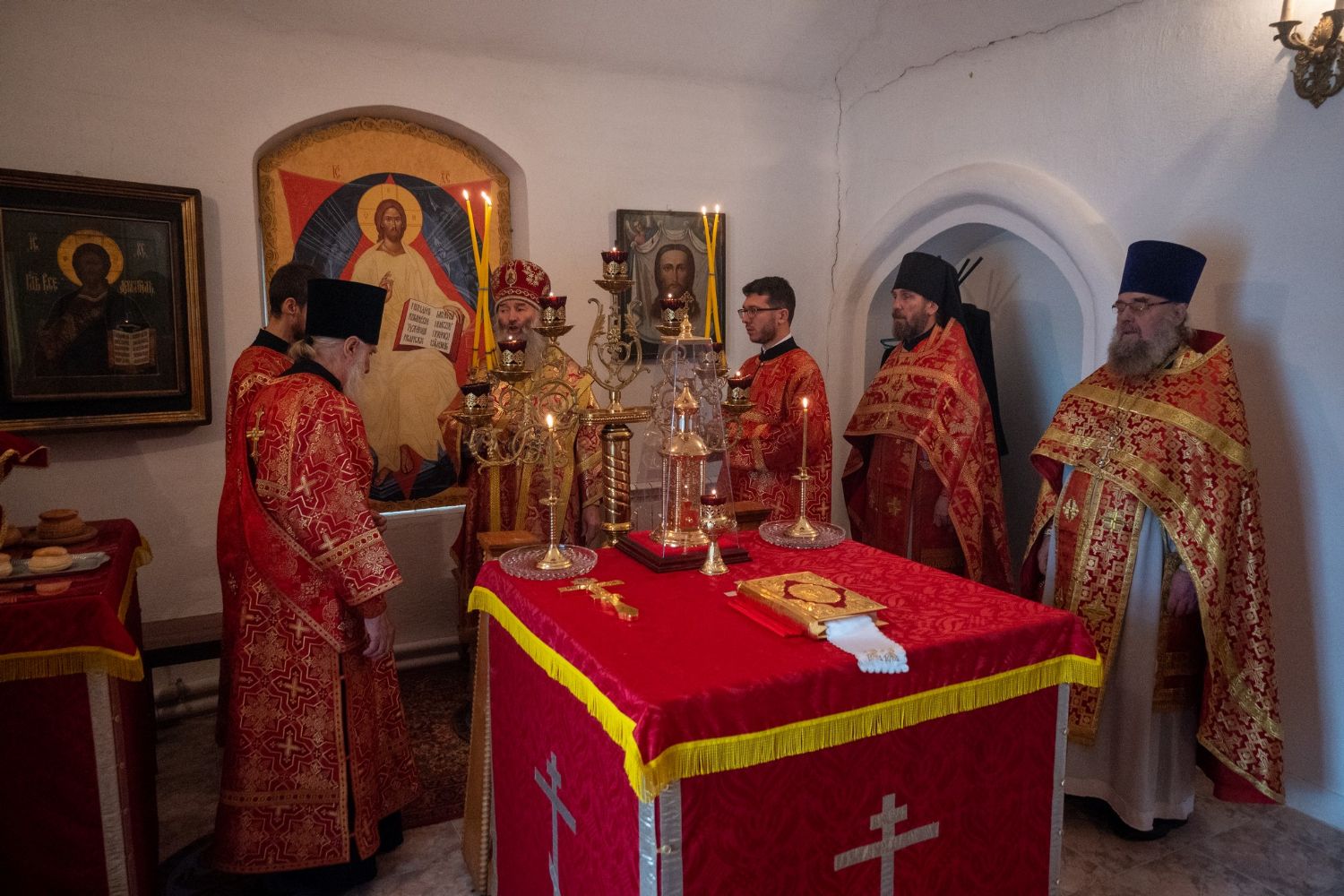 Владыке сослужили секретарь Йошкар-Олинского епархиального управления иеромонах Серафим (Пасанаев), клирик монастыря иерей Михаил Лежнин, настоятель Покровского храма с. Чкарино протоиерей Валентин Пылаев и протодиакон Михаил Козловский. Песнопения исполнял хор «Благовест» под управлением регента Надежды Поздеевой.