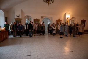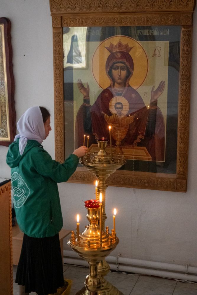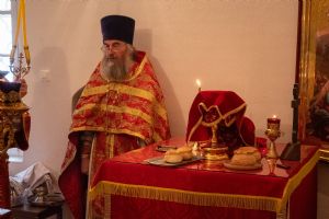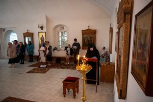 Перед причащением мирян отец Серафим зачитал обращение Партиарха Московского и Всея Руси Кирилла по случаю Всероссийского дня трезвости. После Литургии прошел крестный ход по территории монастыря к часовне Иоанна Предтечи, где был совершен водосвятный молебен.