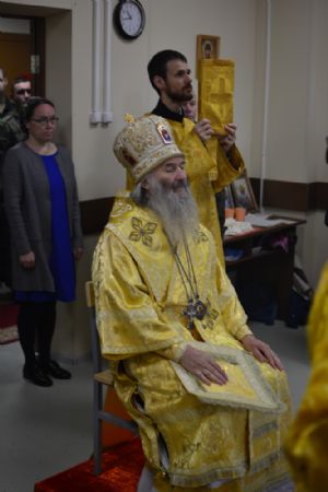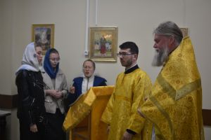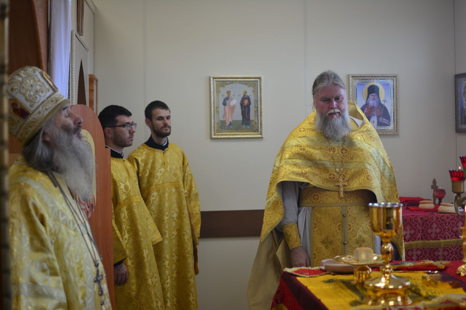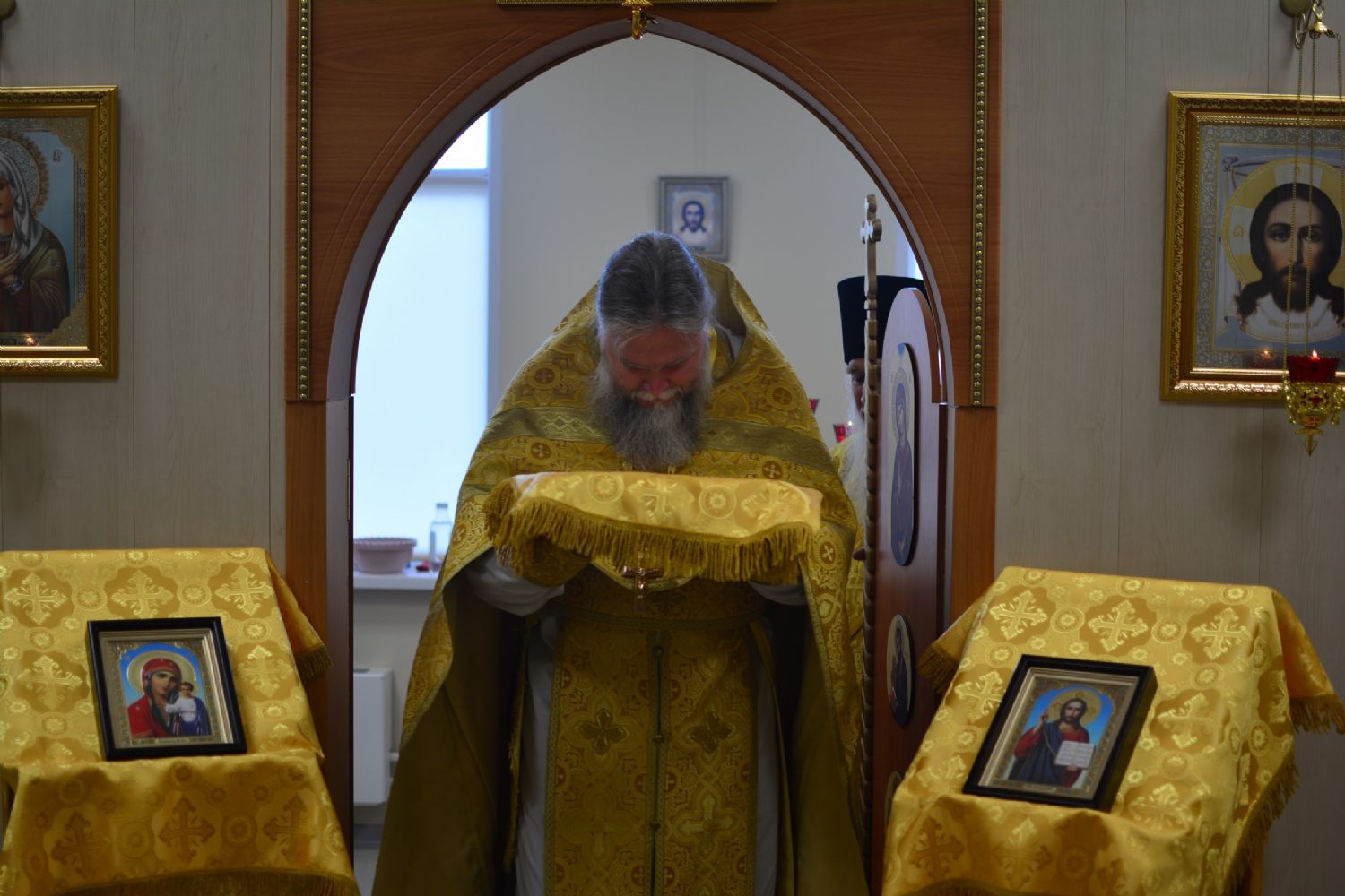 Владыке сослужили полковой священник иерей Георгий Колотов, настоятель храма преподобного Серафима Саровского г. Йошкар-Ола протоиерей Александр Бачурин и протодиакон Михаил Козловский. Песнопения исполнял малый состав хора «Благовест» под управлением Надежды Поздеевой.