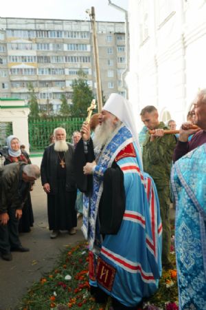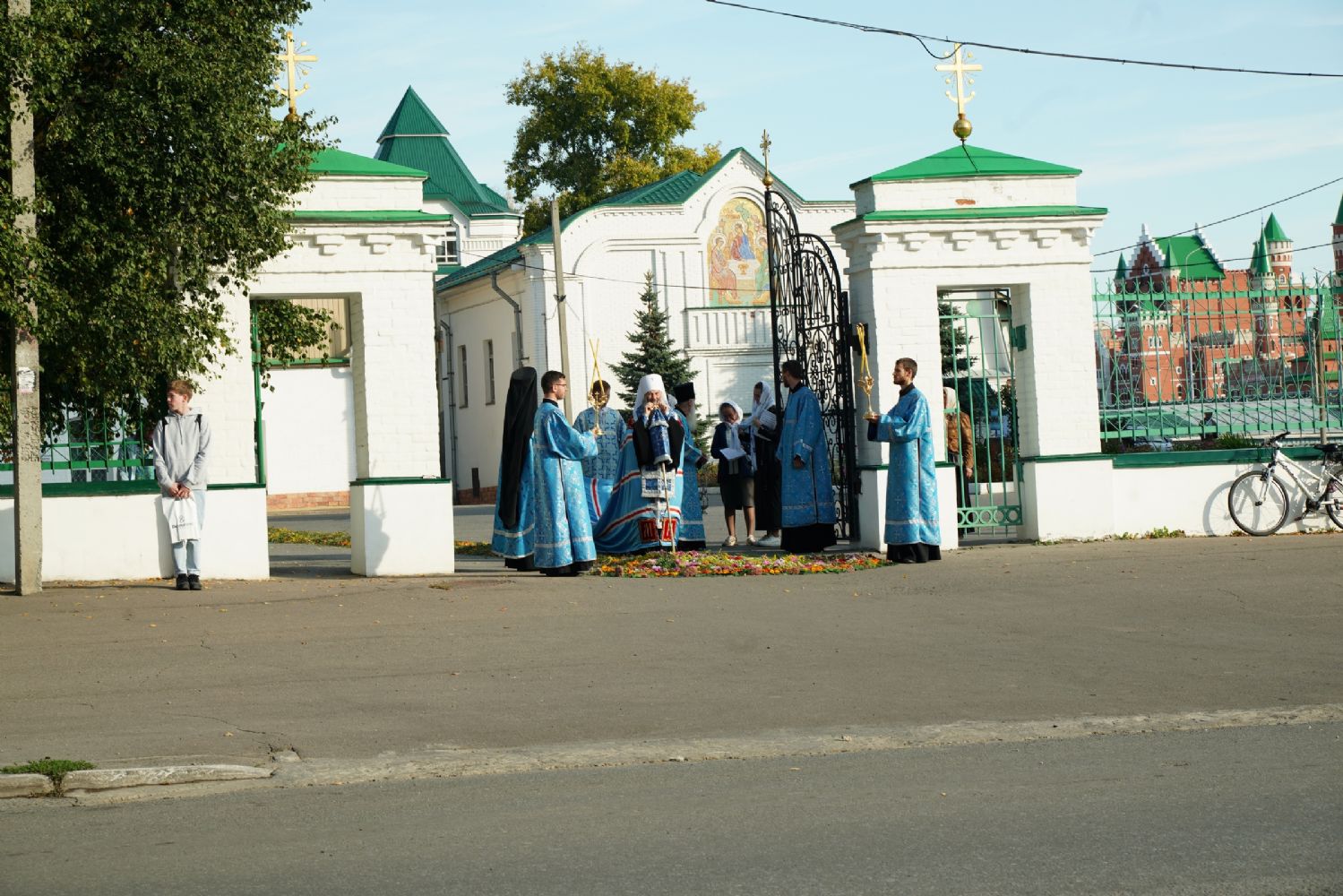 В домовом храме Йошкар-Олинского епархиального управления в честь иконы Божией Матери «Троеручица» святыню встретил митрополит Йошкар-Олинский и Марийский Иоанн. Владыка со священством и прихожанами совершили славление перед чудотворным Мироносицким образом Царицы Небесной и вознесли молитву Богородице.