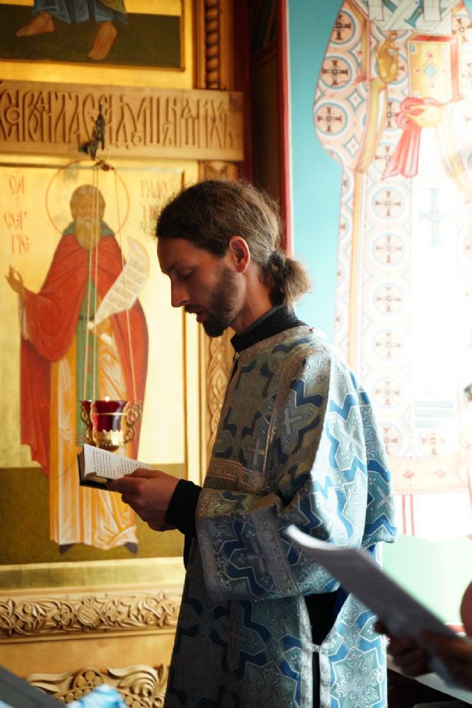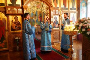 Архипастырю сослужили секретарь Йошкар-Олинского епархиального управления иеромонах Серафим (Пасанаев) и протодиакон Михаил Козловский. Песнопения исполнял малый состав хора «Благовест» под управлением Надежды Поздеевой.