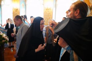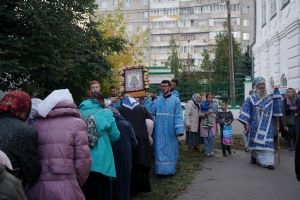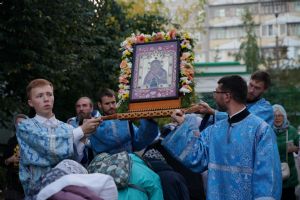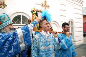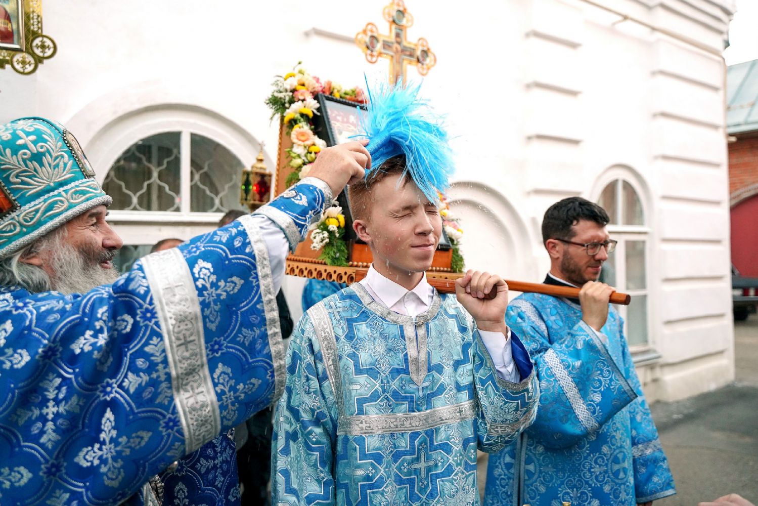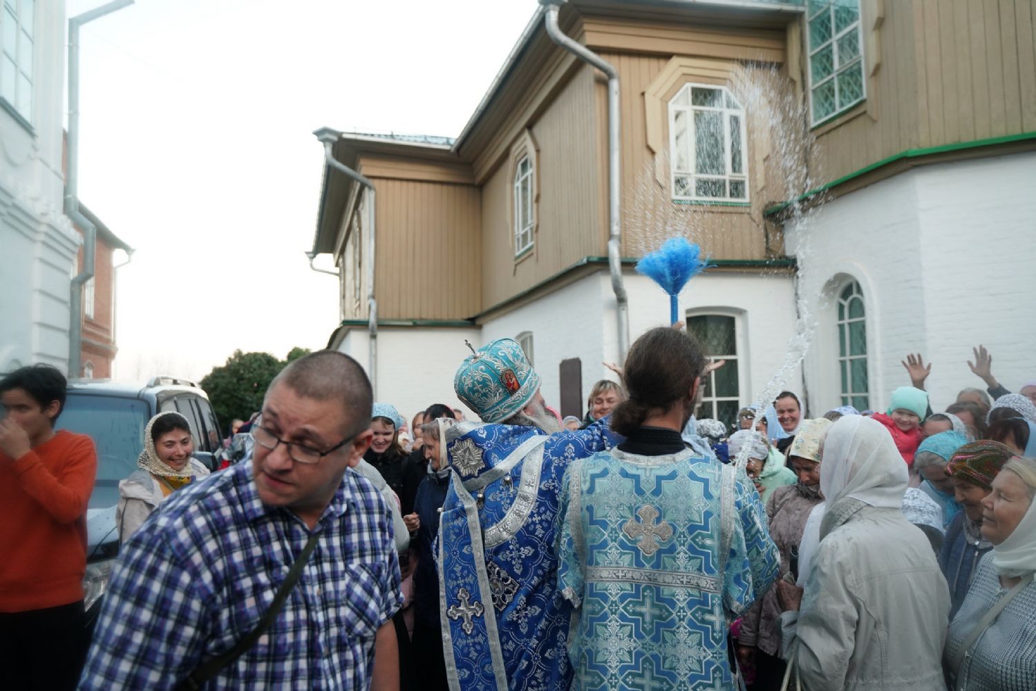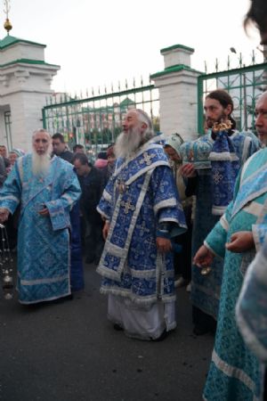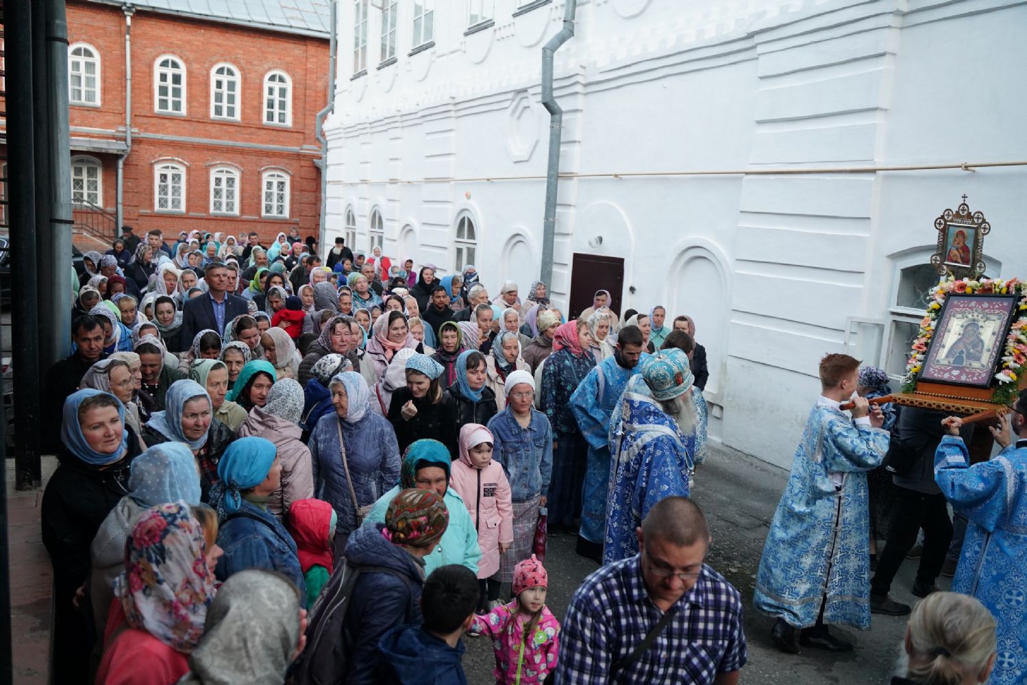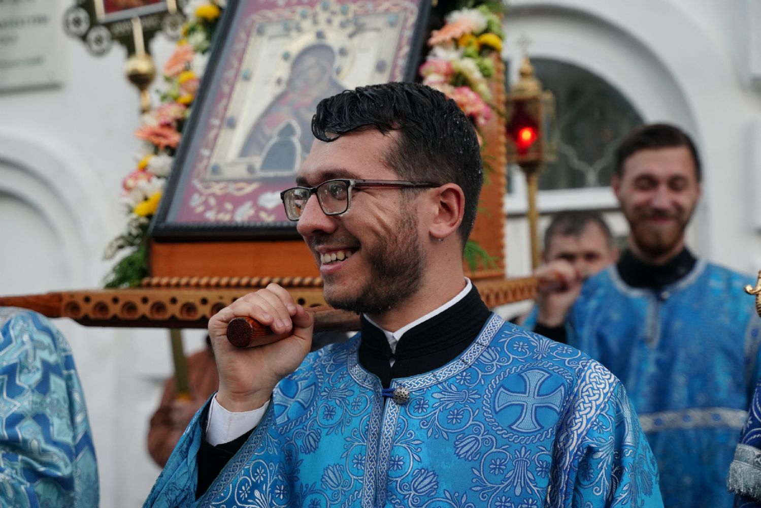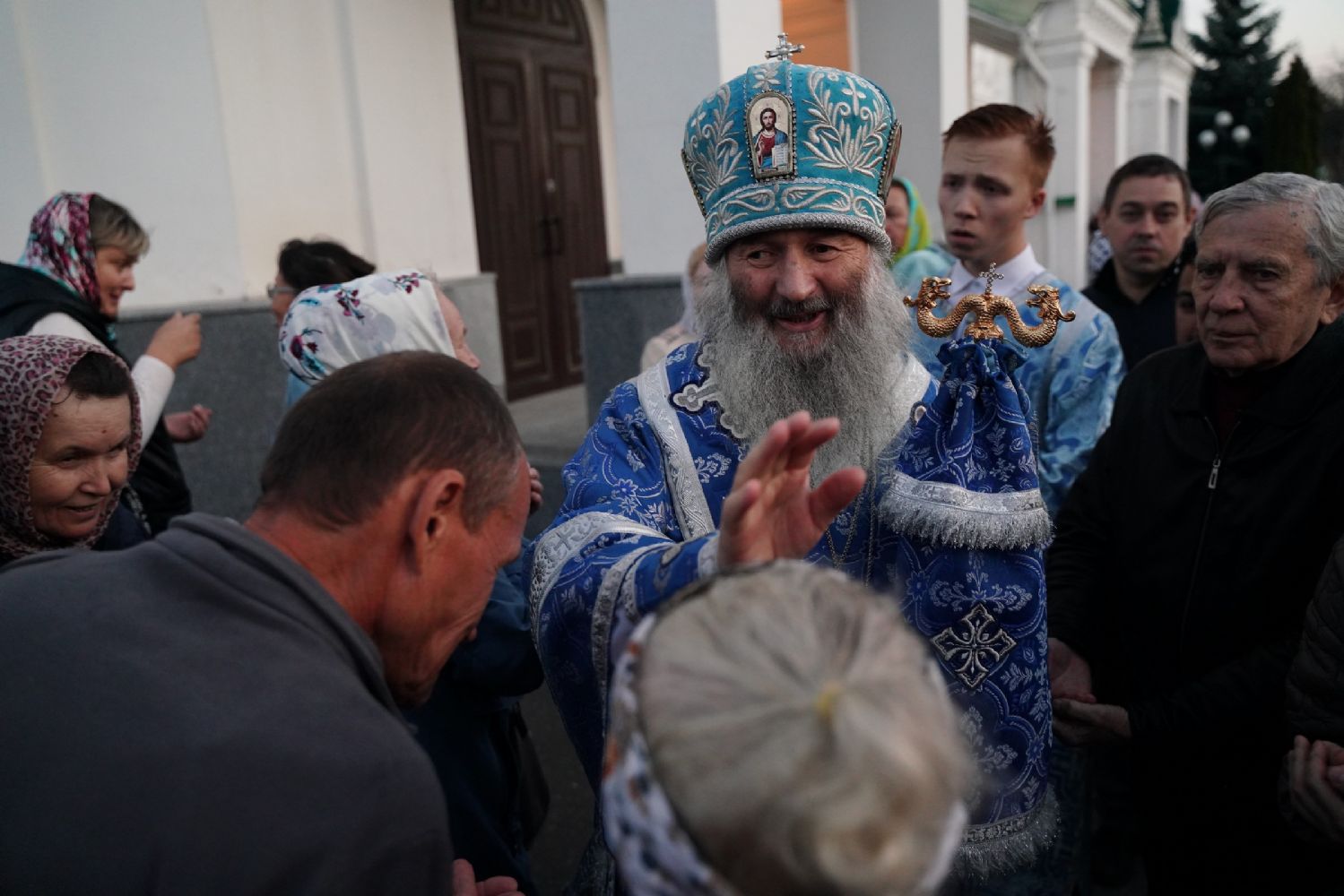 По окончании всенощного бдения крестный ход с Мироносицкой иконой Богородицы продолжился и, обойдя вокруг домового храма, отправился к Вознесенскому собору, где святыню встретили духовенство и прихожане собора.