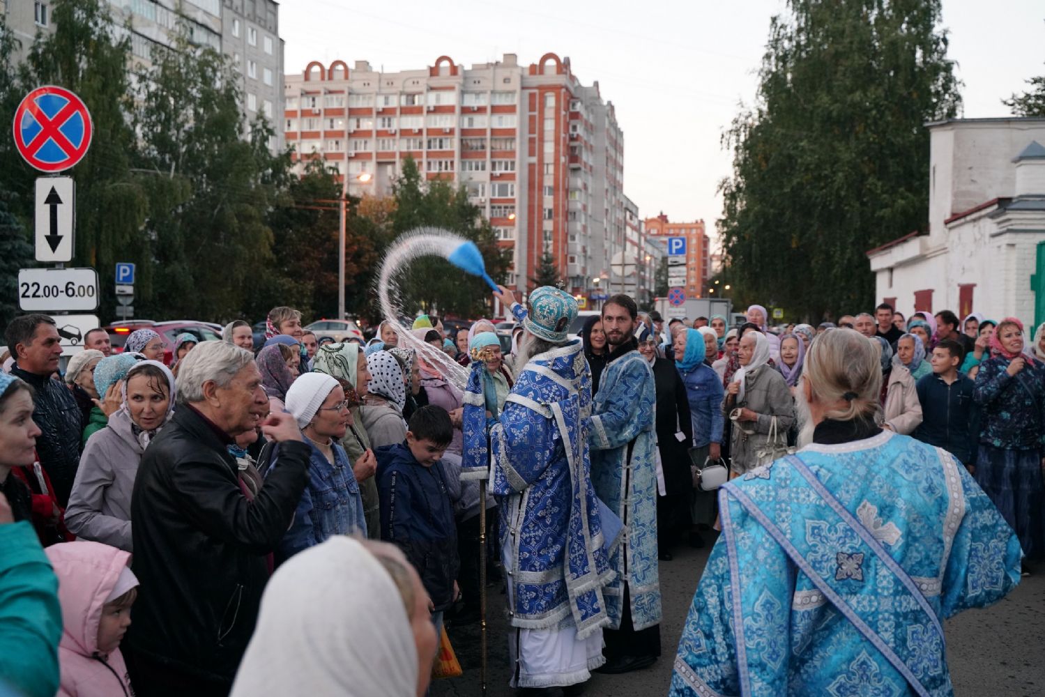 12 сентября вечером, после встречи крестного хода с Мироносицкой иконой Пресвятой Богородицы, митрополит Йошкар-Олинский и Марийский Иоанн возглавил всенощное бдение в домовом храме епархиального управления.