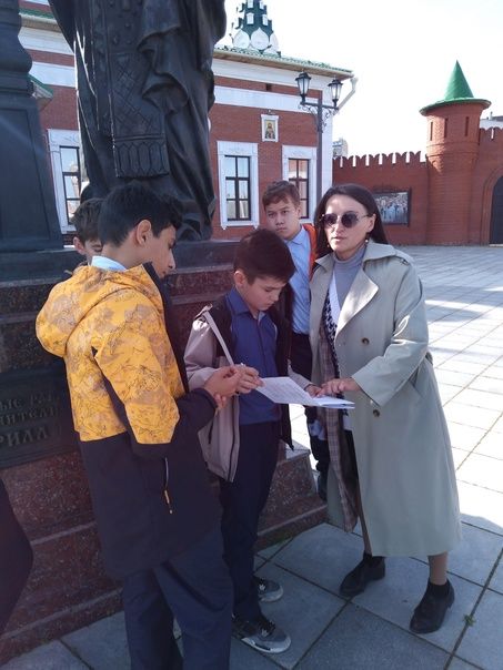 Урок продолжили сотрудники Музея истории Йошкар-Олы, которые предложили ребятам поучаствовать в квесте «Православная тропинка» по святым местам города, озвучили правила участия в игре и разделили школьников на четыре команды. К каждой команде был прикреплен сопровождающий ее сотрудник, и ребята отправились выполнять задания, связанные с историей города, храмами и православными памятниками. Каждая команда придумала себе название.