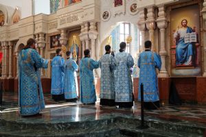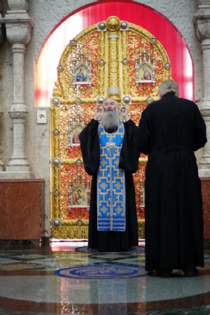В Успенском храме было совершено славление и вознесена молитва Пресвятой Богородице, затем владыка поздравил собравших с новолетием и пожелал помощи Божией во всех благих делах.