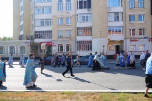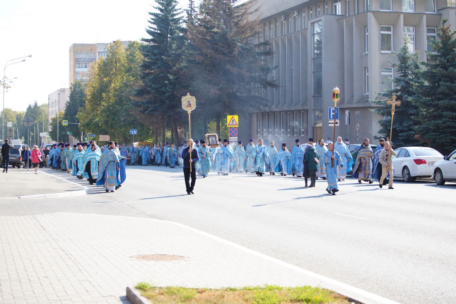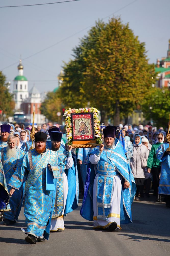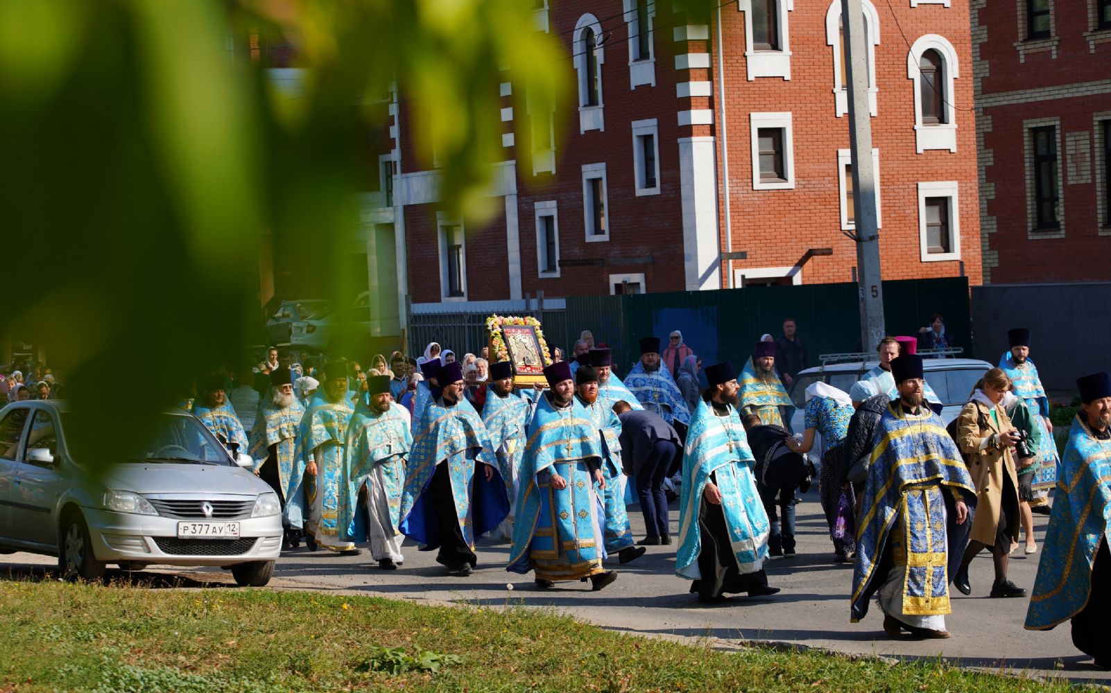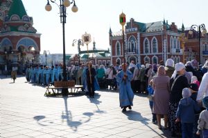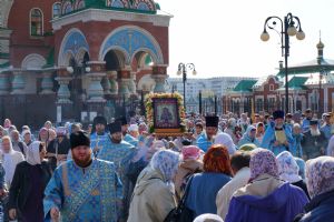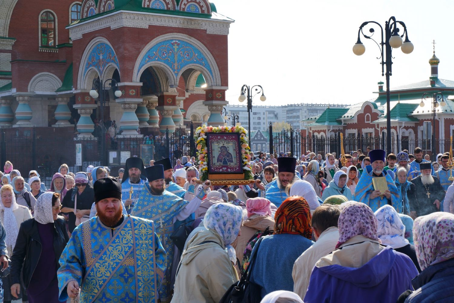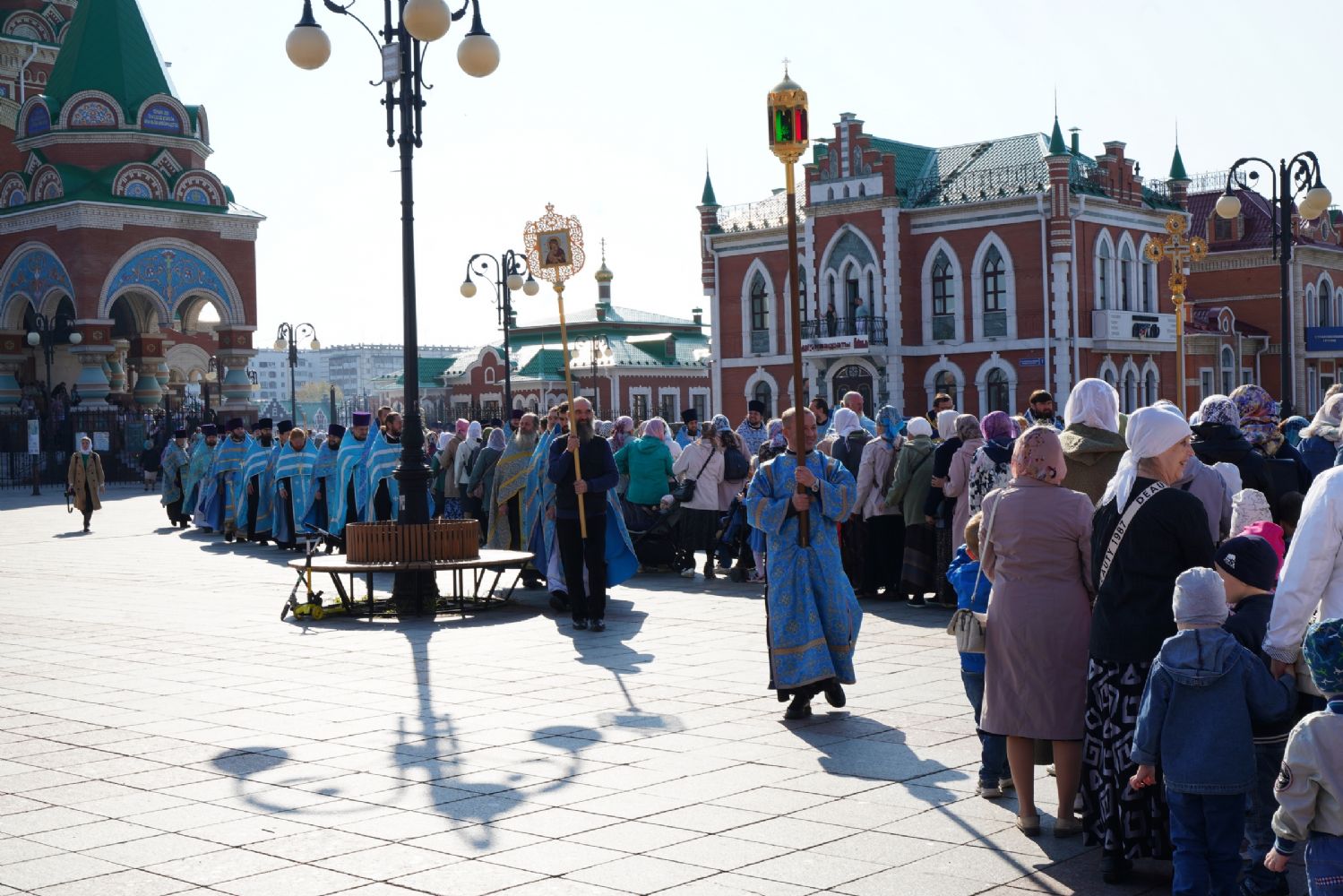 После Литургии был совершен молебен на новолетие, и далее крестный ход с Мироносицкой иконой Божией Матери отправился в Успенский храм г. Йошкар-Олы. Пресвятая Богородица освятила Своим шествием улицы города. Около строящегося Входоиерусалимского храма, Православного центра и домового храма мученицы Татианы делались остановки с молитвами Пречистой и кроплением святой водой.