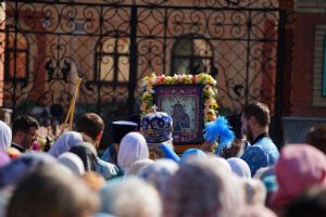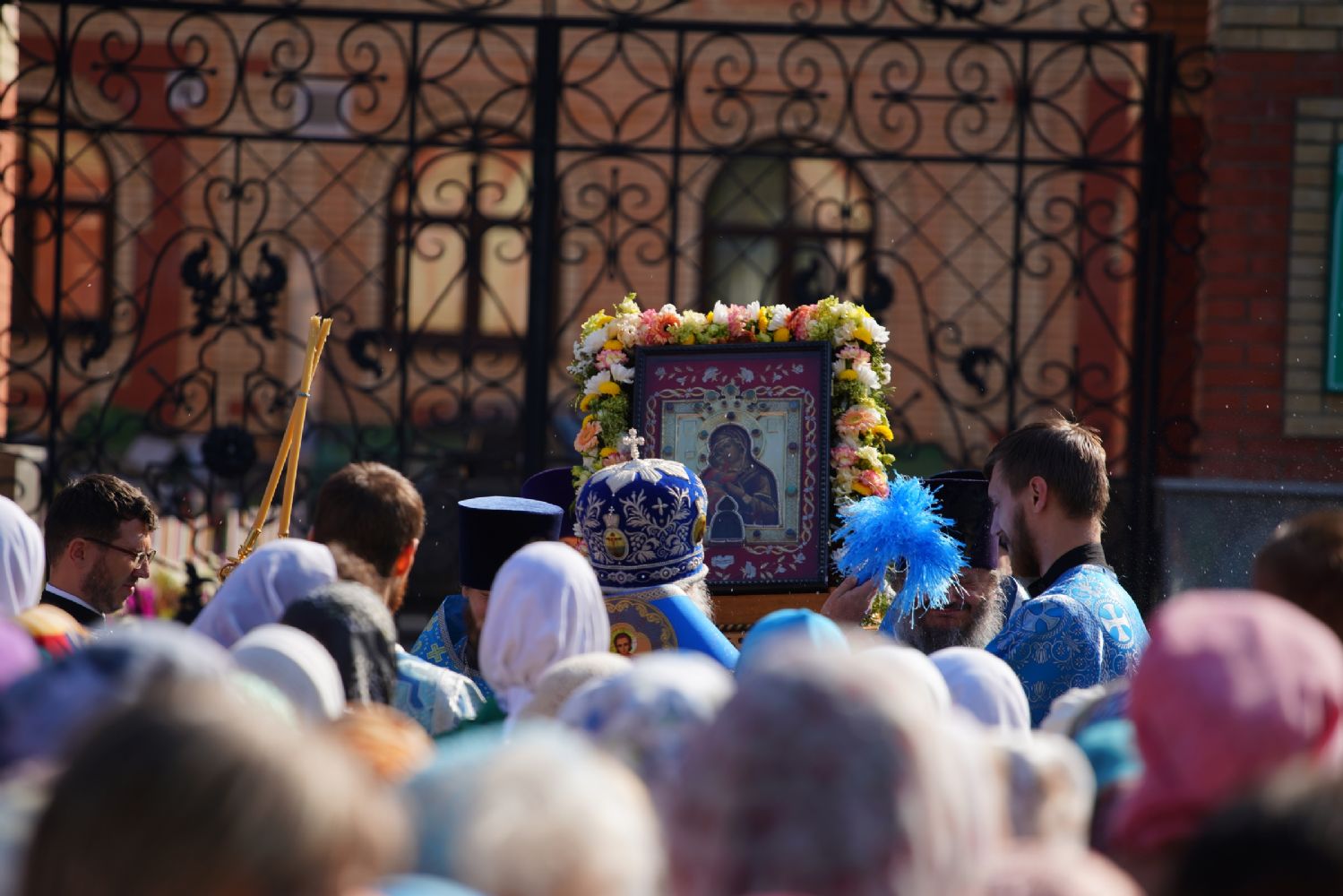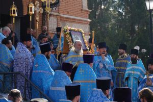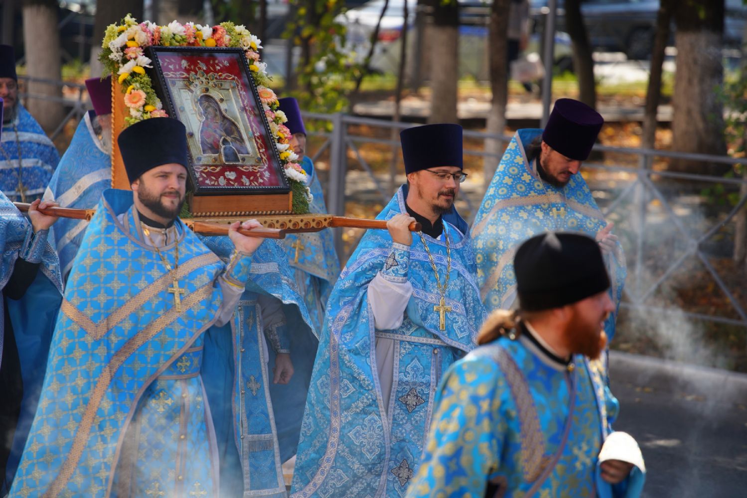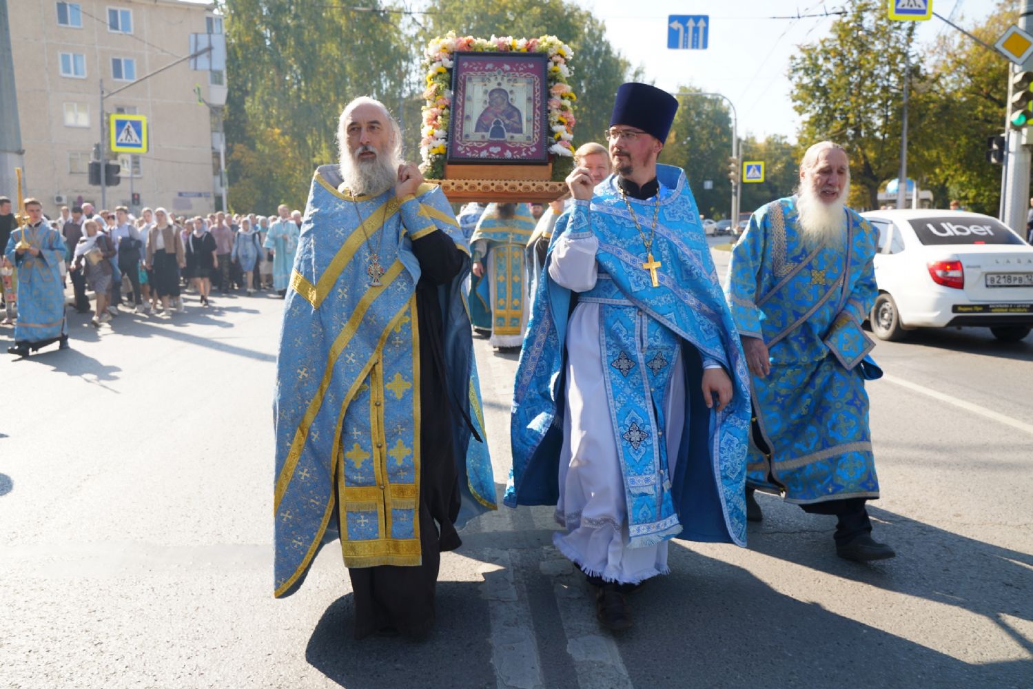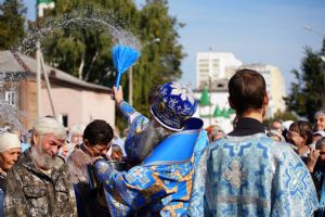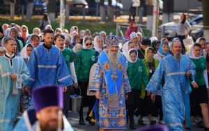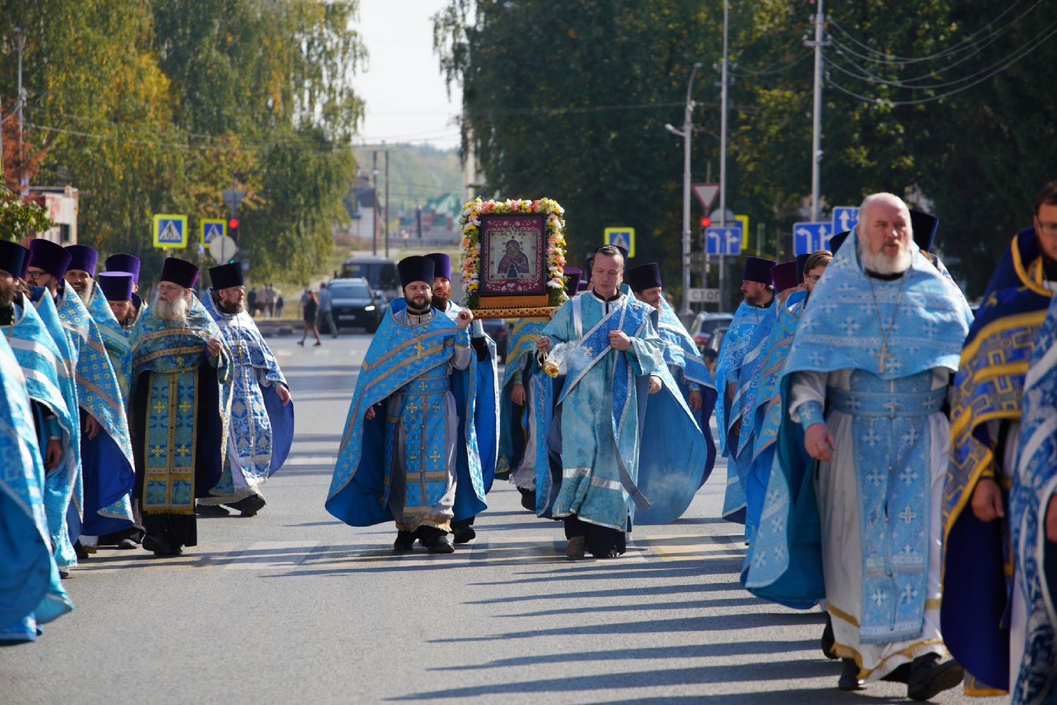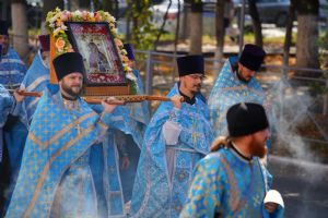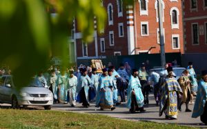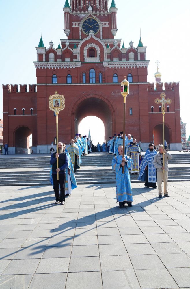 После Литургии был совершен молебен на новолетие, и далее крестный ход с Мироносицкой иконой Божией Матери отправился в Успенский храм г. Йошкар-Олы. Пресвятая Богородица освятила Своим шествием улицы города. Около строящегося Входоиерусалимского храма, Православного центра и домового храма мученицы Татианы делались остановки с молитвами Пречистой и кроплением святой водой.