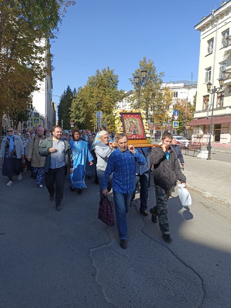 15 сентября после Божественной литургии в Успенском храме г. Йошкар-Олы крестоходцы с Мироносицкой иконой Божией Матери двинулись в дальнейший путь.