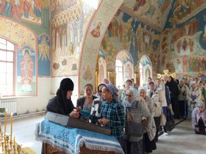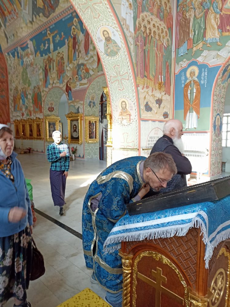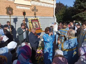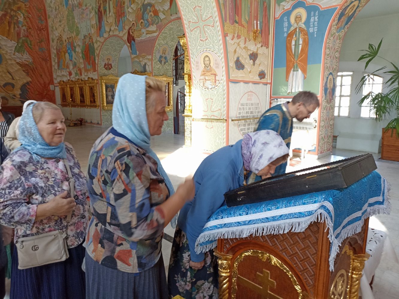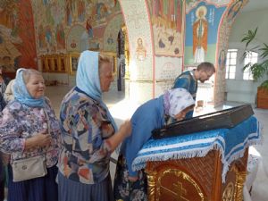 Навстречу крестоходцам с иконами и хоругвями вышли прихожане Троицкого храма во главе со священником Александром Козловым. Все вместе вознесли молитву ко Пречистой, верующие благоговейно приложились к святыне.