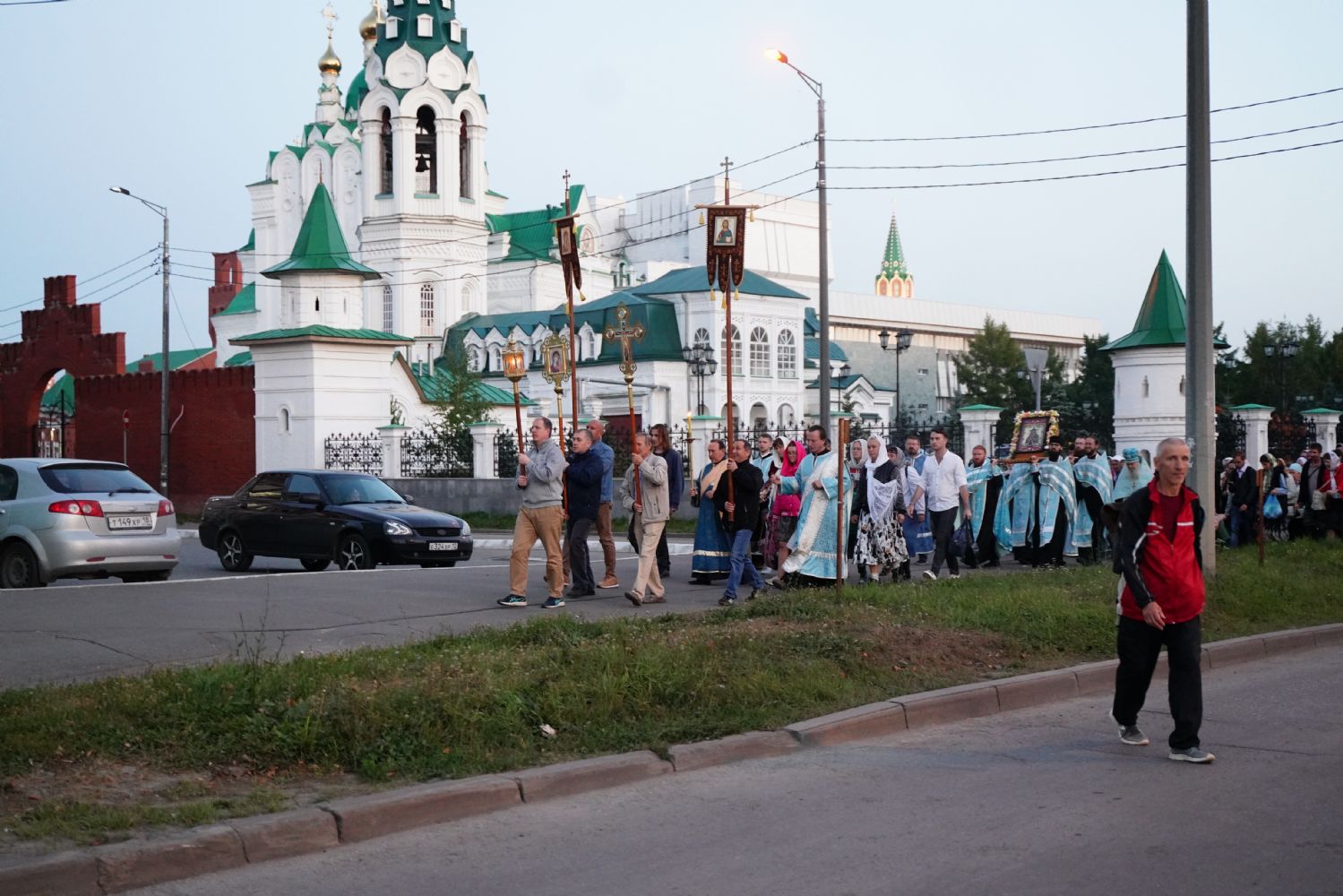 15 сентября вечером в Троицком храме г. Йошкар-Олы, куда днем был принесен Мироносицкий образ Пресвятой Богородицы, было совершено всенощное бдение.