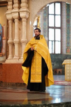 Отцу Серафиму сослужили ключарь кафедрального собора протоиерей Сергий Поглазов, клирики собора иереи Никифор Захаров, Евгений Самойлов, Александр Староверов, диакон Артемий Бобоч, а также протодиакон Михаил Козловский. Песнопения исполнял детско-юношеский хор «Благовест» под управлением регента Татьяны Черновой.