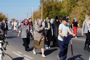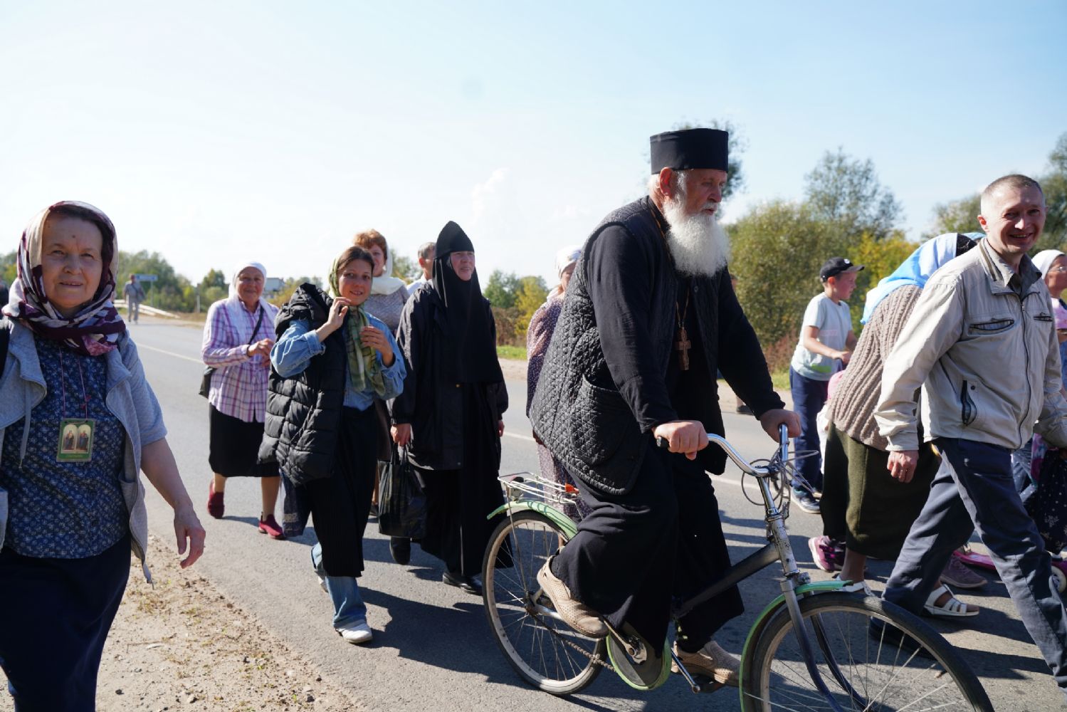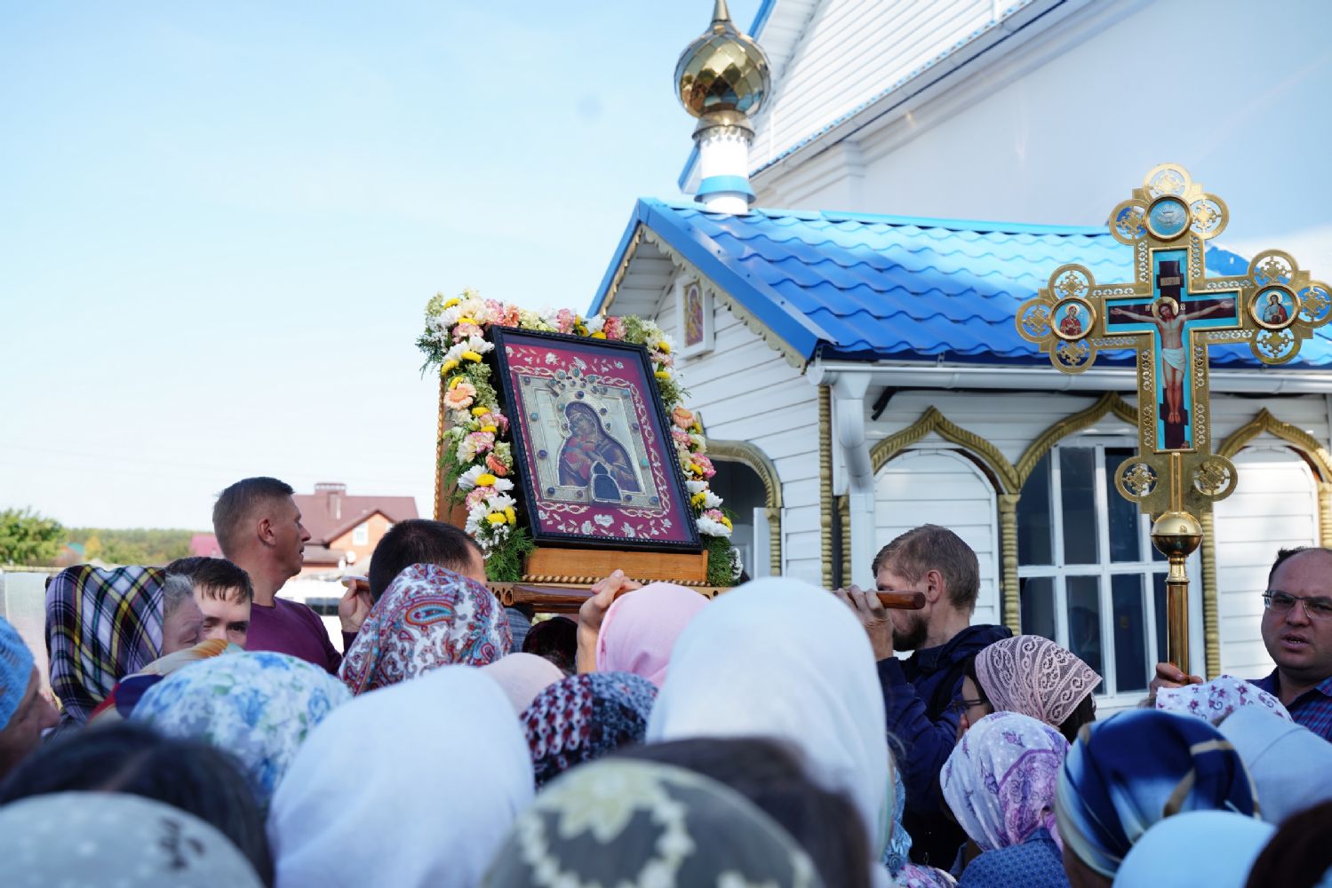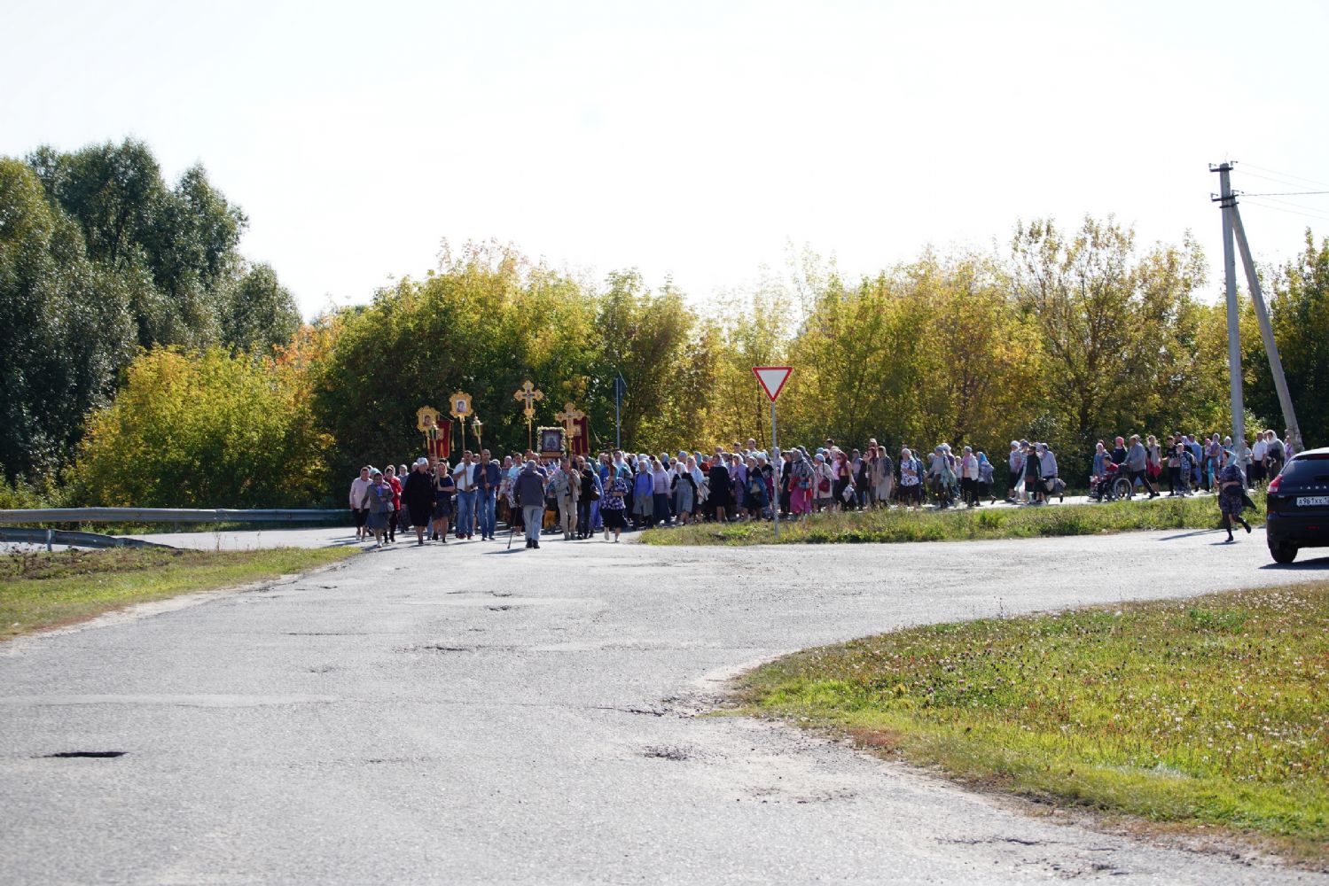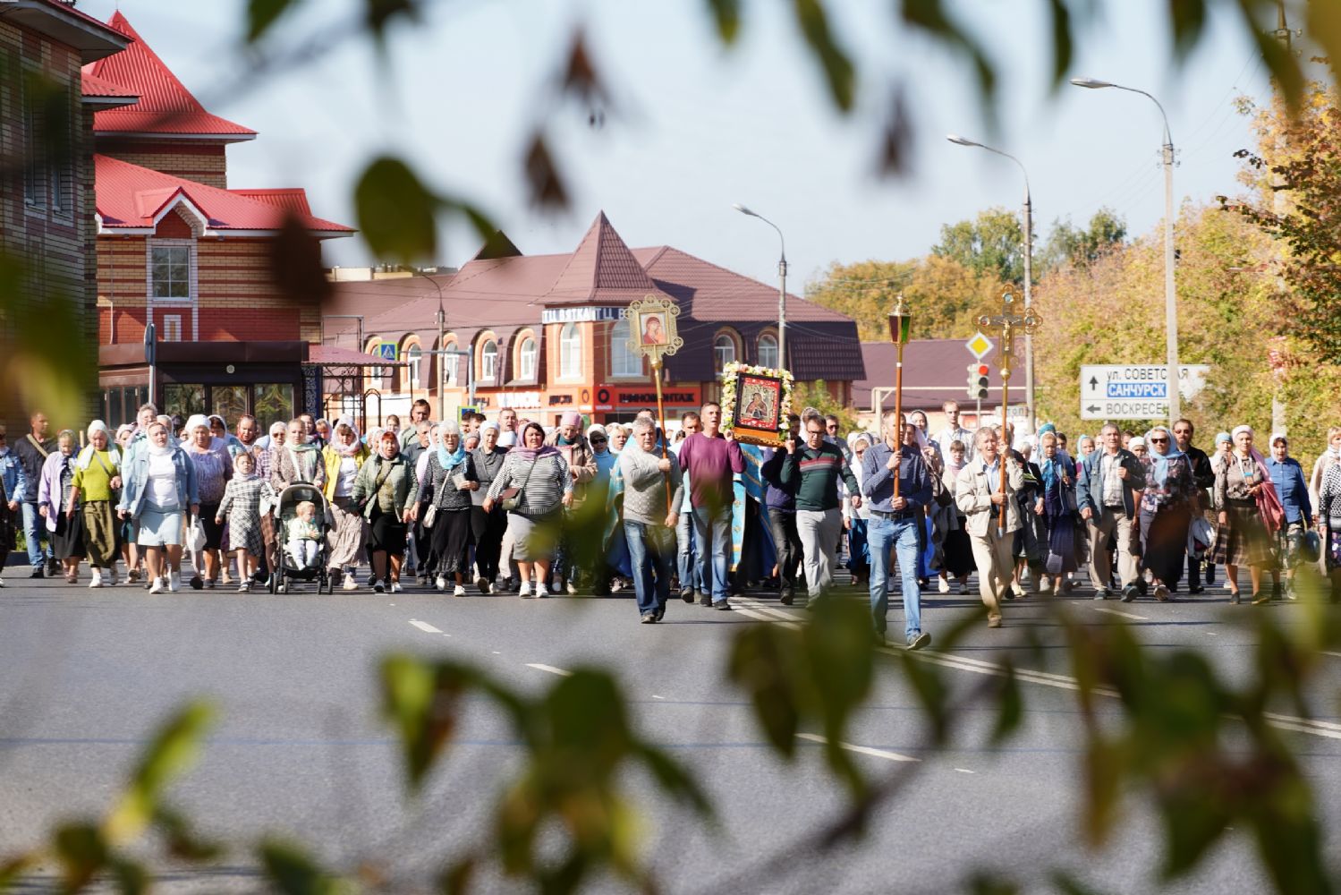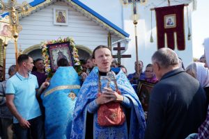 После Литургии был совершен крестный ход вокруг собора с чтением Евангелия и кроплением святой водой. И затем Мироносицкая икона Божией Матери под звон колоколов в сопровождении священства и прихожан отправилась в дальнейший путь – за пределы Йошкар-Олы, в село Кузнецово Медведевского района. К молитвенному шествию присоединялись жители селений, лежащих на пути следования святыни.