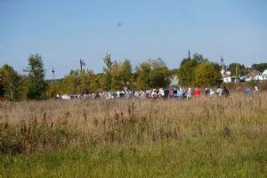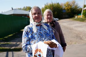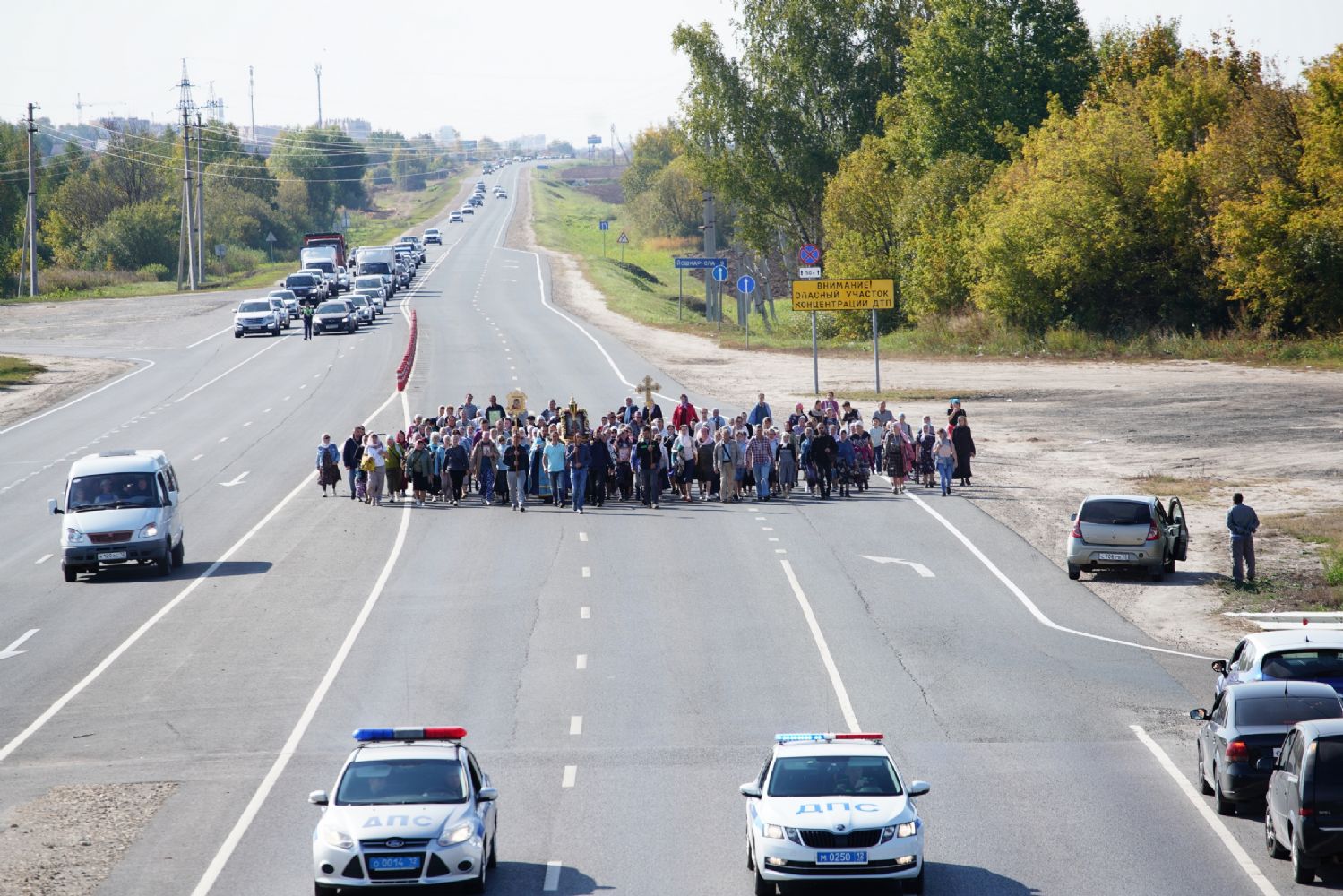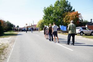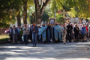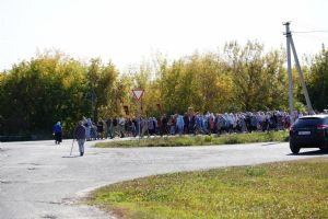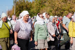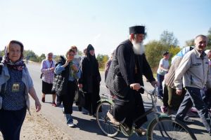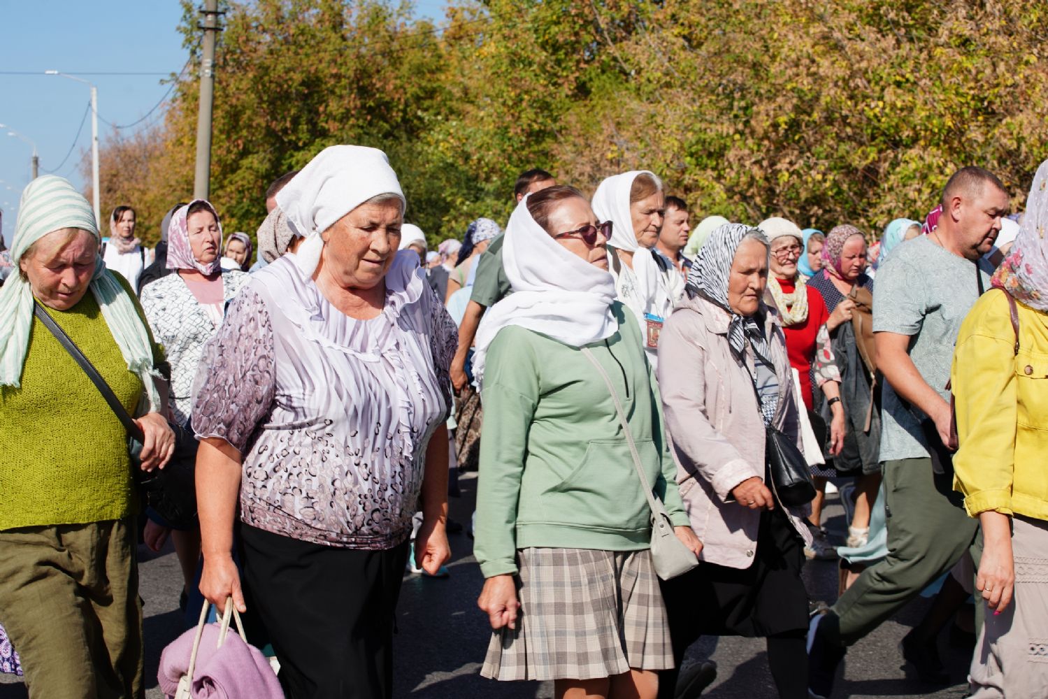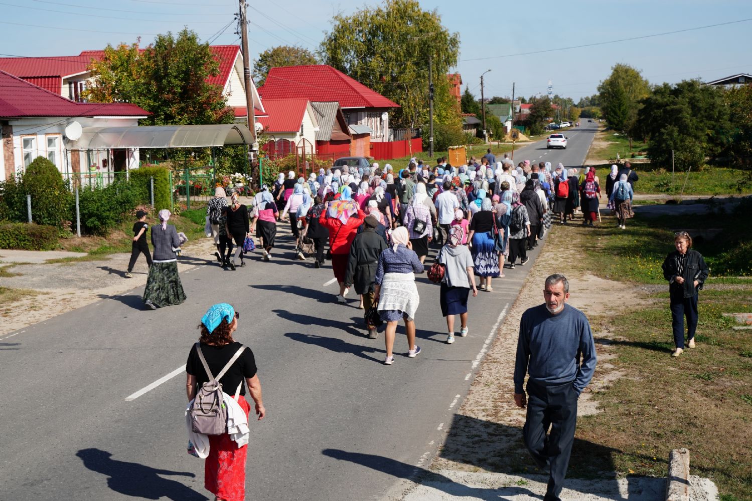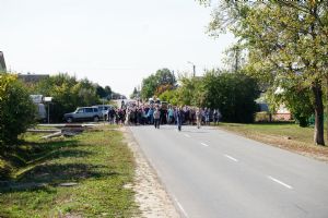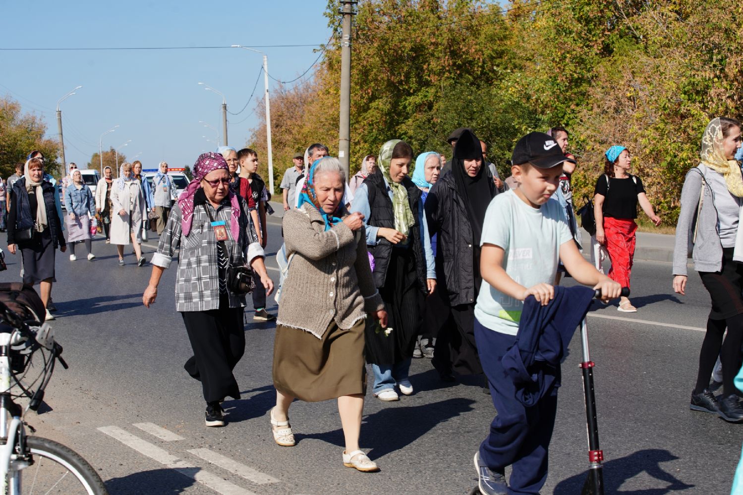 После Литургии был совершен крестный ход вокруг собора с чтением Евангелия и кроплением святой водой. И затем Мироносицкая икона Божией Матери под звон колоколов в сопровождении священства и прихожан отправилась в дальнейший путь – за пределы Йошкар-Олы, в село Кузнецово Медведевского района. К молитвенному шествию присоединялись жители селений, лежащих на пути следования святыни.