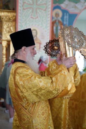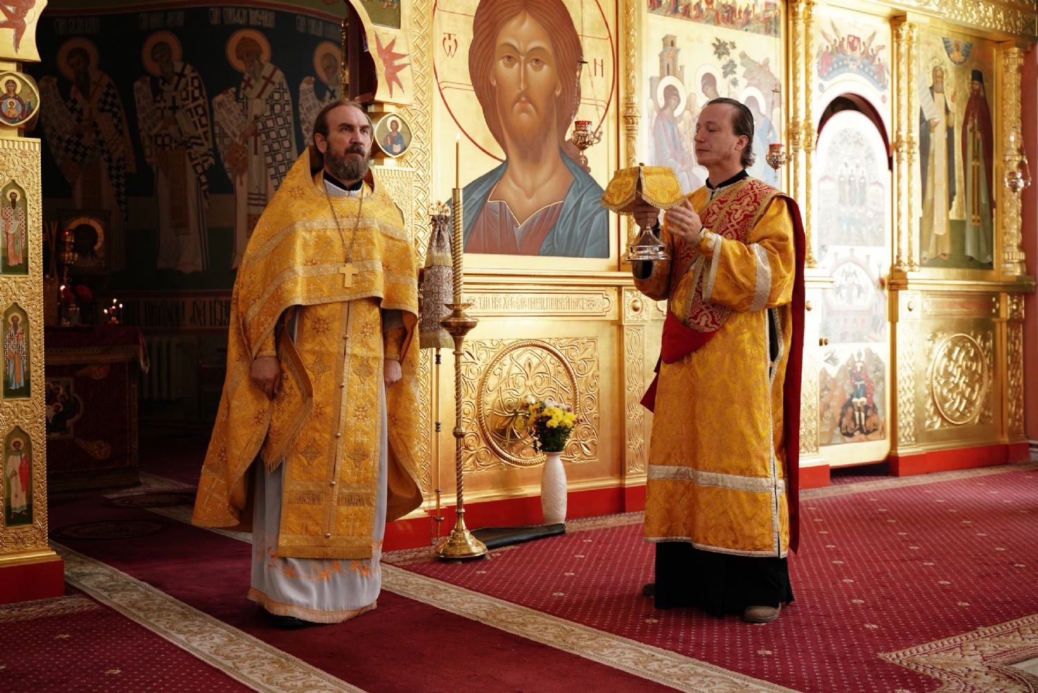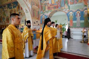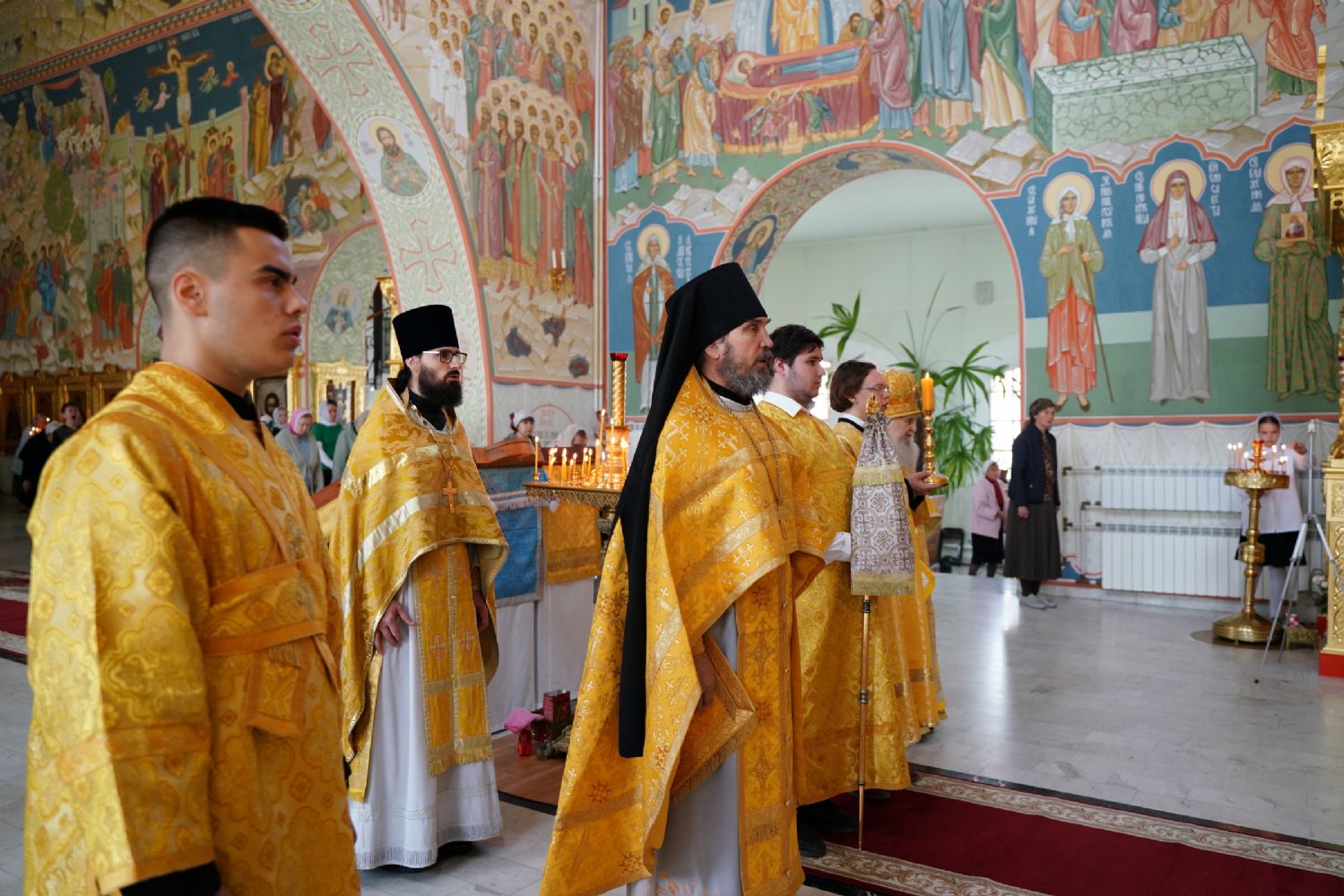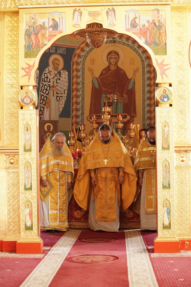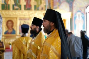 Его Высокопреосвященству сослужили секретарь Йошкар-Олинского епархиального управления иеромонах Серафим (Пасанаев), настоятель храма протоиерей Евгений Кутырев, клирик храма иерей Иоанн Кристев и протодиакон Михаил Козловский. Пел хор храма под управлением регента Анны Ярошевич. Часть песнопений звучала на марийском языке.