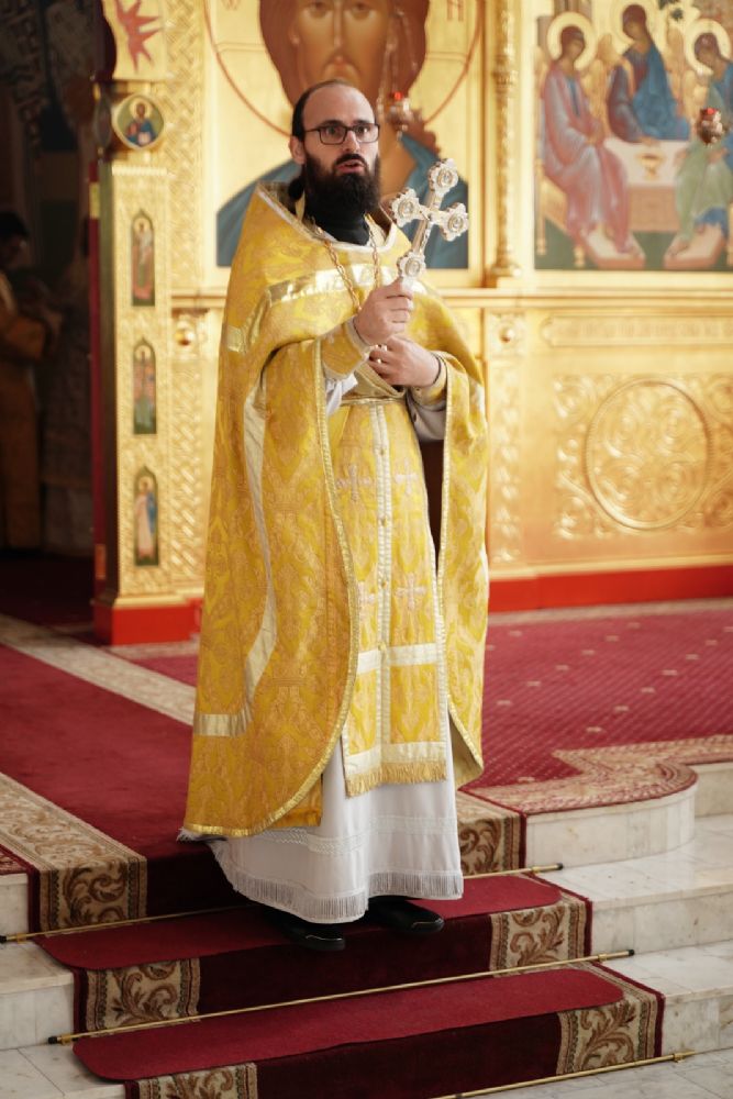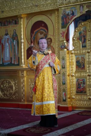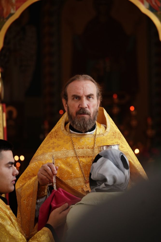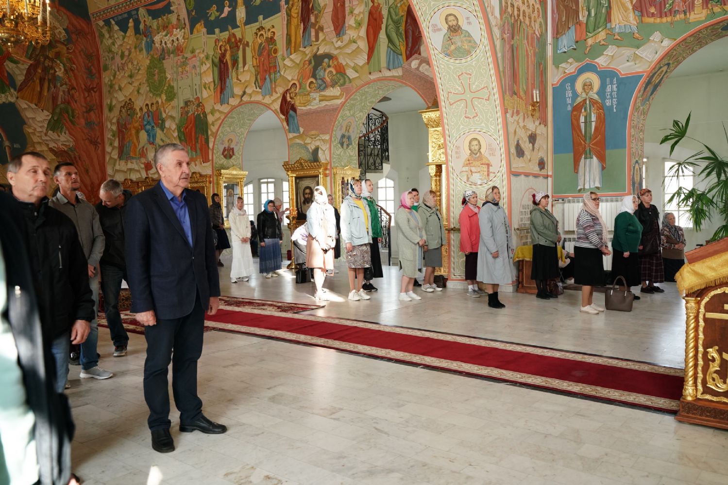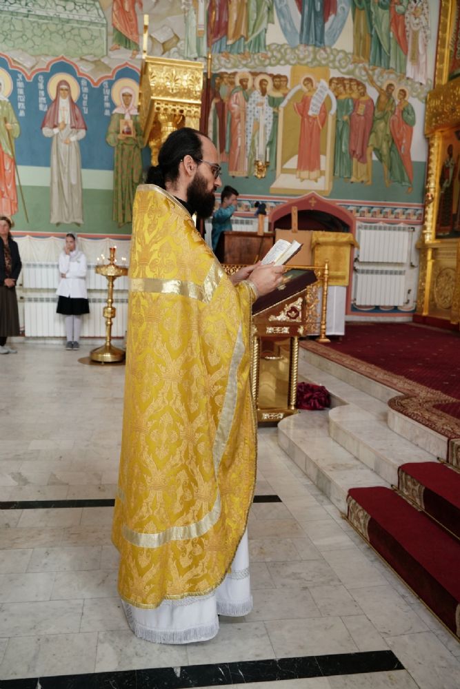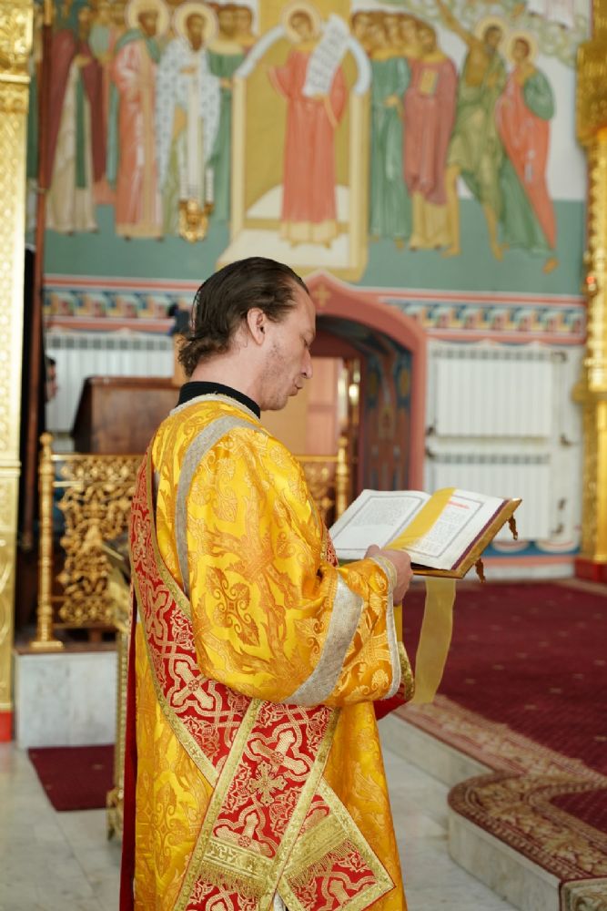 Его Высокопреосвященству сослужили секретарь Йошкар-Олинского епархиального управления иеромонах Серафим (Пасанаев), настоятель храма протоиерей Евгений Кутырев, клирик храма иерей Иоанн Кристев и протодиакон Михаил Козловский. Пел хор храма под управлением регента Анны Ярошевич. Часть песнопений звучала на марийском языке.