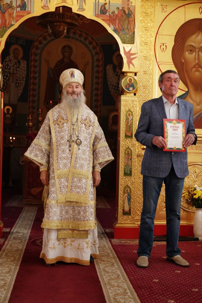 Медали священномученика Леонида, епископа Марийского, III степени удостоен Иванов Иван Грирорьевич – помощник настоятеля храма Покрова Пресвятой Богородицы с.Кокшайск. Архиерейские грамоты вручены: Мосунову Григорию Владимировичу; Белову Александру Александровичу; Новоселову Максиму Игоревичу; Курмузакову Валерию Алексеевичу; Смирновой Валентине Георгиевне и Маргиной Галине Ивановне.