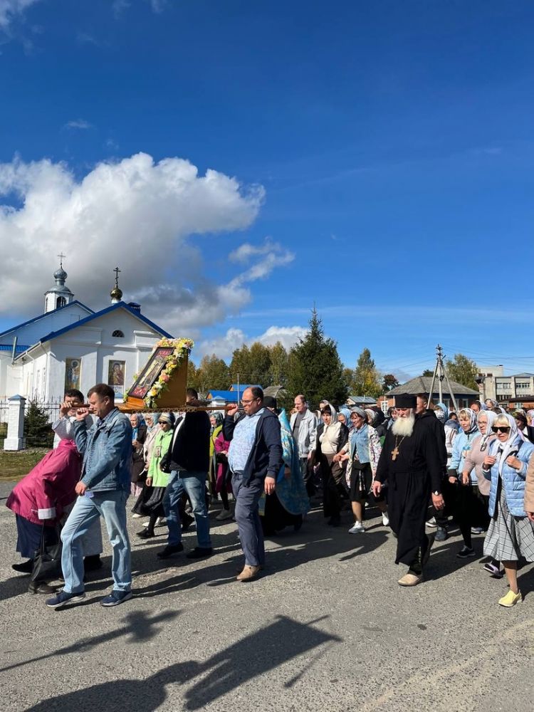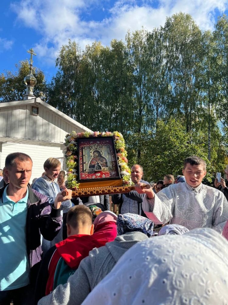 16 сентября в храме Владимирской иконы Божией Матери села Кузнецово Медведевского района, куда крестным ходом из Йошкар-Олы принесли Мироносицкий образ Пресвятой Богородицы, была совершена Божественная литургия.