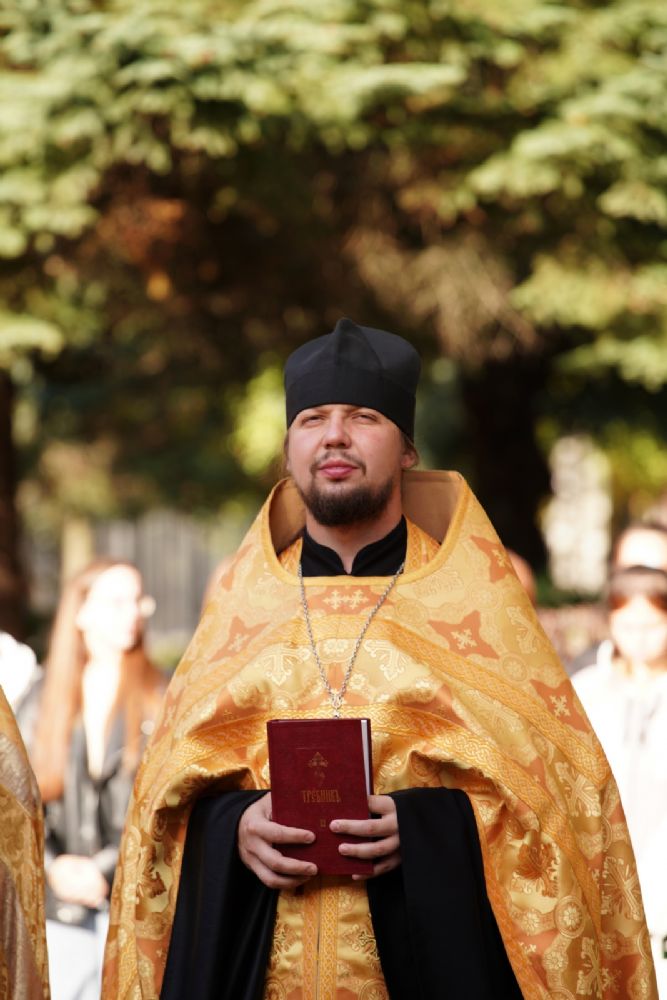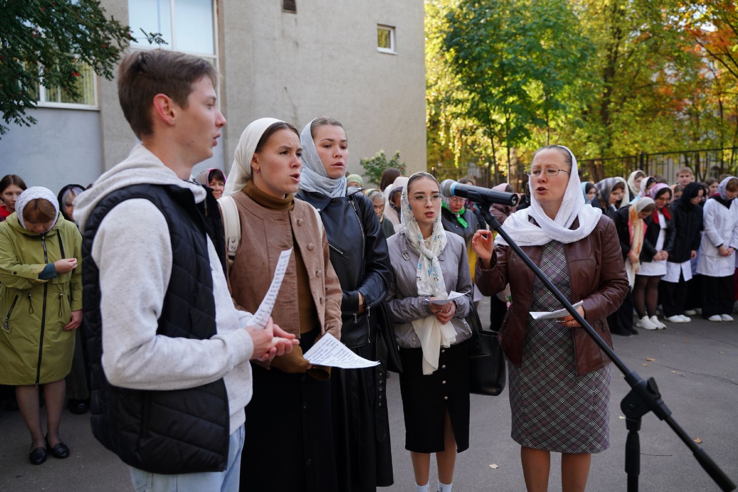 Молебен совершался на открытом воздухе у входа в здание колледжа. Владыке сослужили иерей Димитрий Дьяков, окормляющий данное учебное заведение, руководитель молодежного отдела Йошкар-Олинской епархии иерей Никита Иванов, иерей Димитрий Копылов, иерей Игорь Коваль и протодиакон Михаил Козловский. Песнопения исполнял малый состав хора «Благовест» под управлением Надежды Поздеевой.