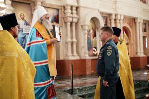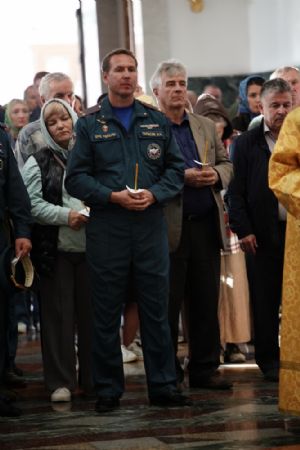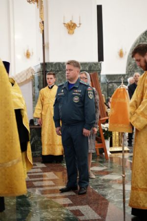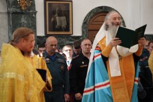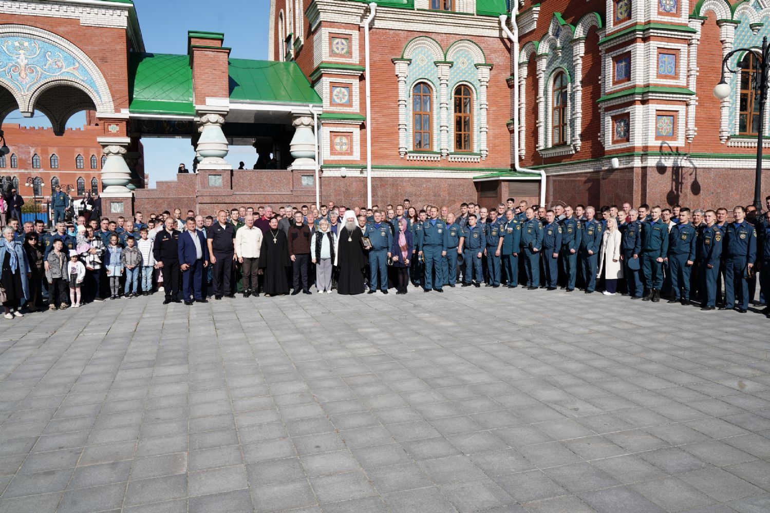 Молебен возглавил митрополит Йошкар-Олинский и Марийский Иоанн. Владыке сослужили ключарь кафедрального собора протоиерей Сергий Поглазов, клирик храма Рождества Пресвятой Богородицы с. Семеновка иерей Димитрий Иванов, окормляющий сотрудников МЧС, и протодиакон Михаил Козловский. За богослужением молились руководство и сотрудники Главного управления МЧС России по Республике Марий Эл, Управления государственный противопожарной службы Республики Марий Эл, бойцы пожарно-спасательных подразделений.