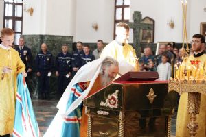 Обращаясь к собравшимся с архипастырским словом, владыка отметил: «Сегодня мы пришли к Пречистой Богоматери, чтобы, воздавая Ей похвалу, возблагодарить Пречистую за то, что Она под Своими благодатными крылами хранит всех нас, оберегая от огненного запаления. Но сегодня мы с вами воздаем и последнюю почесть рабу Божию Евгению, который душу свою отдал за спасение ближних. Он, спасая ближнего, исполнил завет Господа. И каждому из нас так же подобает, оберегая ближних от опасностей, от огненного запаления, не щадить себя».