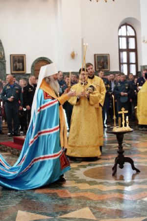 После молебна митрополит Иоанн отслужил литию по бывшему министру МЧС России Евгению Зиничеву, отдавшему жизнь при исполнении служебного долга в 2021 году.