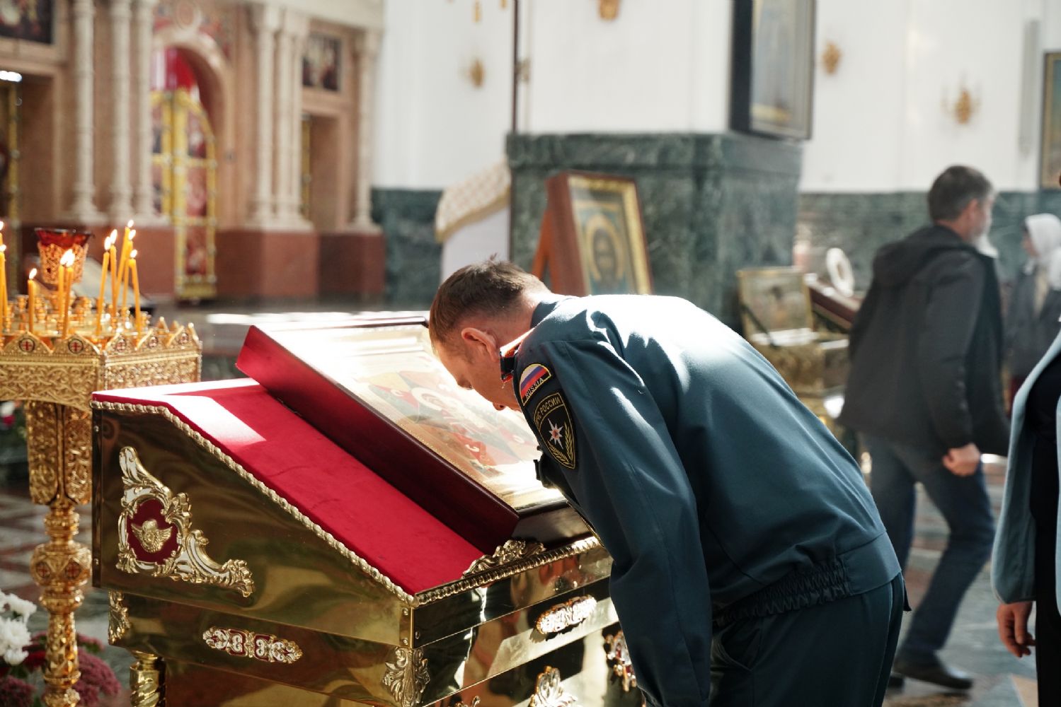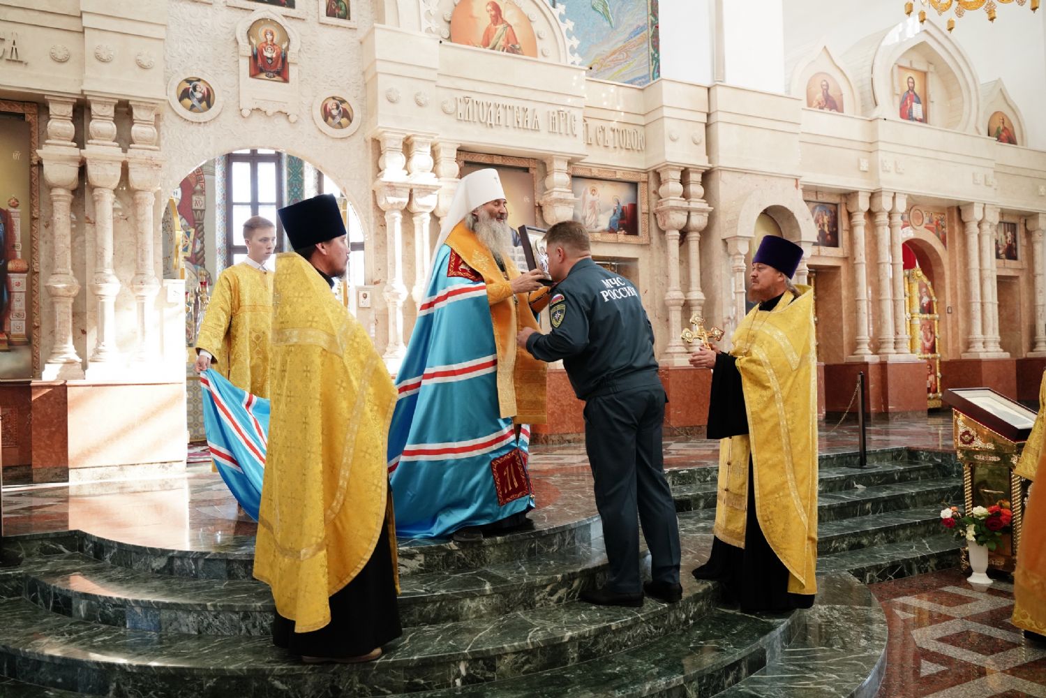 На молитвенную память начальнику Главного управления МЧС России по Республике Марий Эл Виктору Шангину митрополит Иоанн вручил икону Божией Матери «Феодоровская», пожелав благословения Царицы Небесной на добрые дела, служение людям.