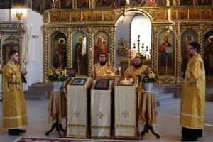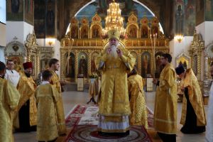 Его Преосвященству сослужило духовенство кафедрального собора. Песнопения исполнял хор собора.