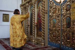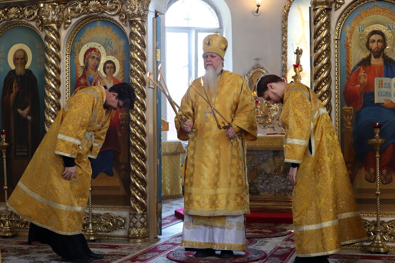 В завершение богослужения епископ Феофан обратился к верующим с архипастырским словом, рассказав об истории иконы Божией Матери «Неопалимая Купина», празднование которой также совершается 17 сентября.