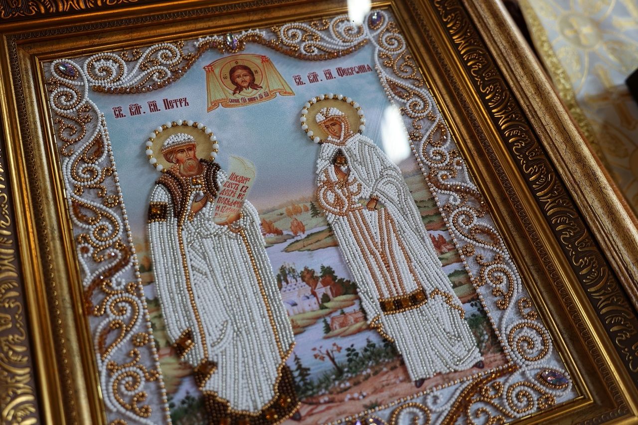 По окончании Литургии духовенство совершило славление перед иконой благоверных князя Петра, в иночестве Давида, и княгини Февронии, в иночестве Евфросинии, Муромских чудотворцев, память которых совершается в этот день.