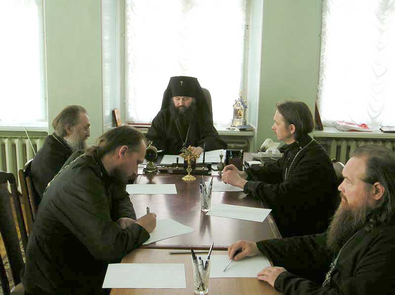 Предметом обсуждения стала работа епархиальной переводческой комиссии. Был зачитан отчет о проделанной работе за прошедший год, выработан перспективный план на 2004-2005 гг., а также утвержден график присутственных дней священнослужителей на рабочих заседаниях переводческой комиссии.