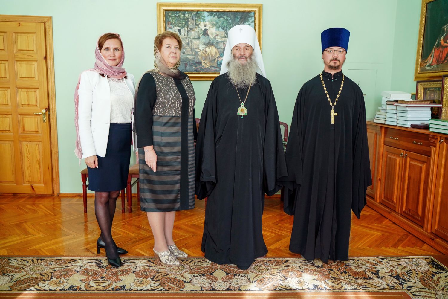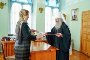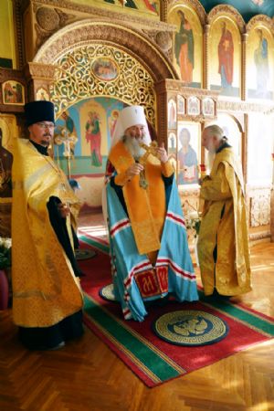 Предварилась эта торжественная церемония молебном на начало всякого доброго дела – его в домовом храме епархиального управления «Троеручица» возглавил митрополит Иоанн. Владыке сослужили руководитель епархиального отдела социального служения и церковной благотворительности иерей Алексий Михеев и протодиакон Михаил Козловский. За богослужением молились представители министерства здравохранения РМЭ.