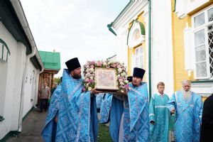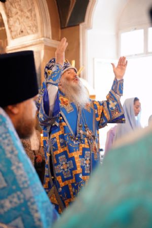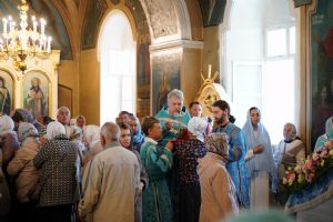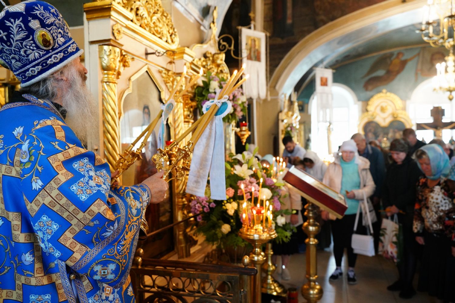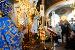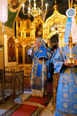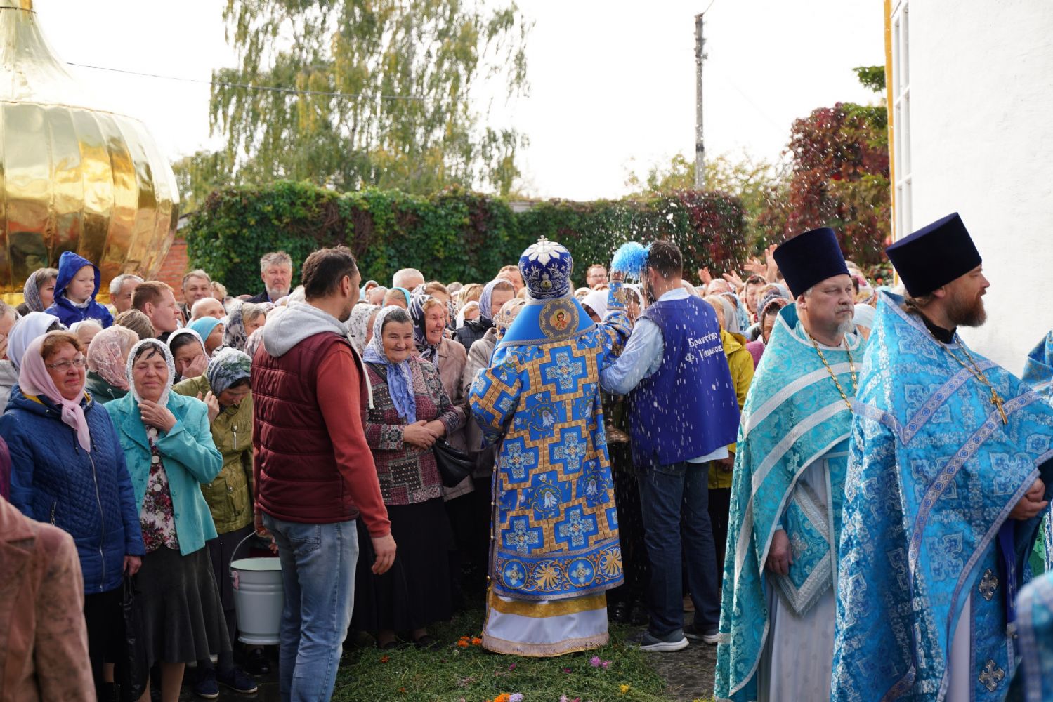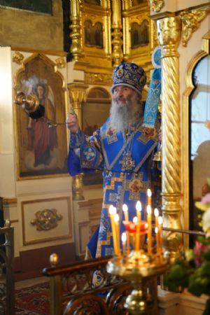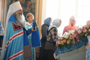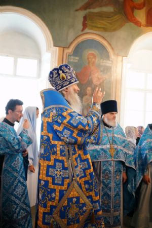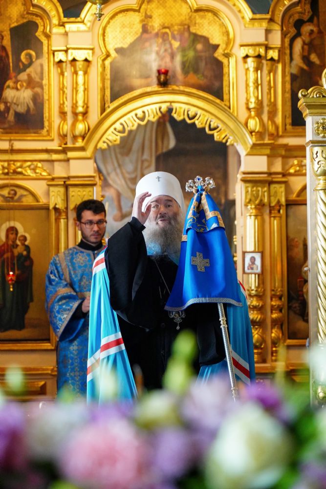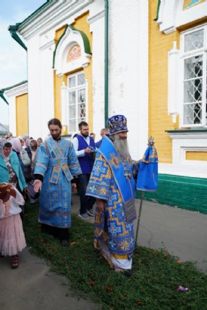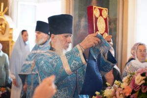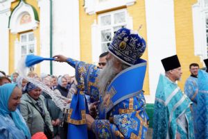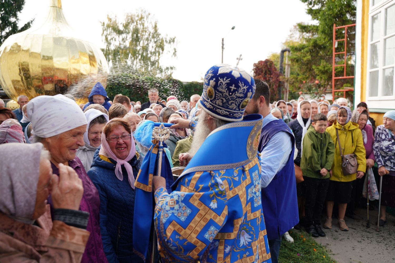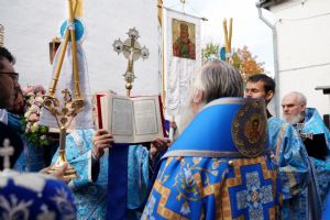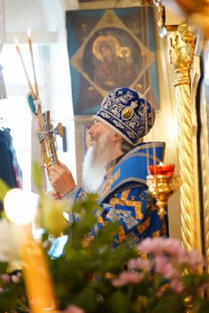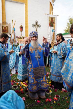 После Литургии, по традиции престольных праздников, вокруг храма прошел крестный ход со чтением Евангелия и кроплением святой водой. По возвращении в храм, верующие вознесли молитву Пресвятой Богородице, пропели Ей величание. Затем митрополит Иоанн обратился к собравшимся с проповедью.